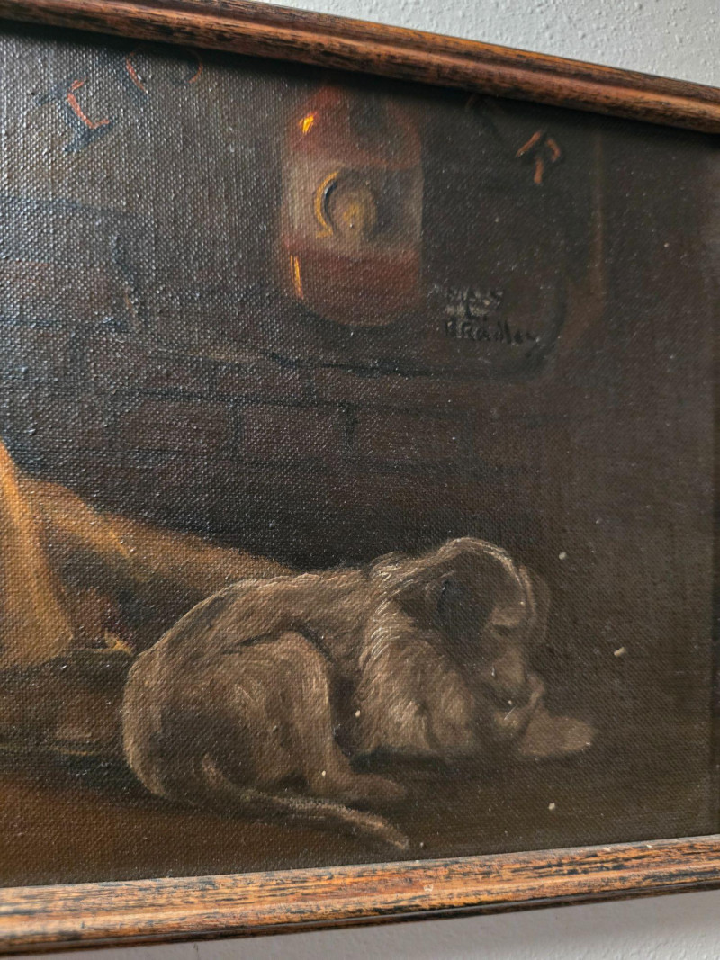 Estate‑fresh artwork with original period framing. Backside markings and notations present.