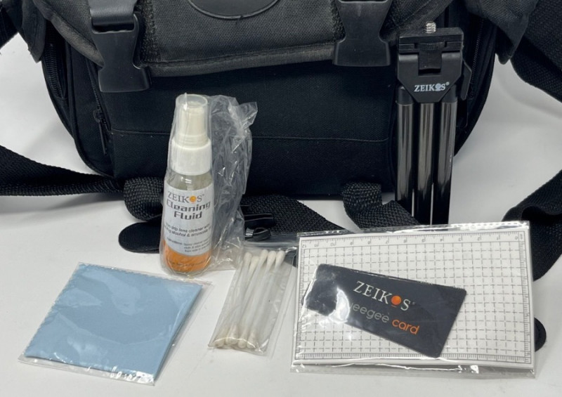 -Zeikos camera bag with unopened accessory kit (filters, cleaning tools, and straps)