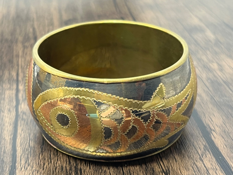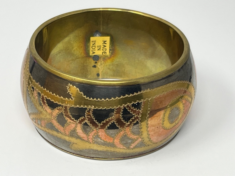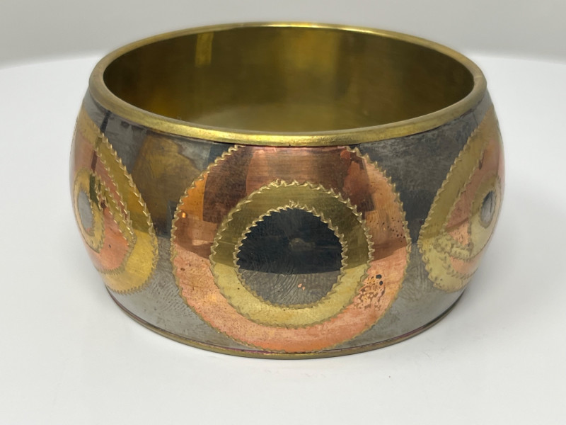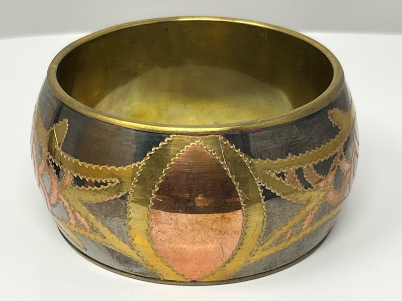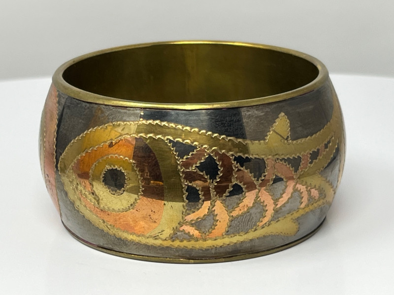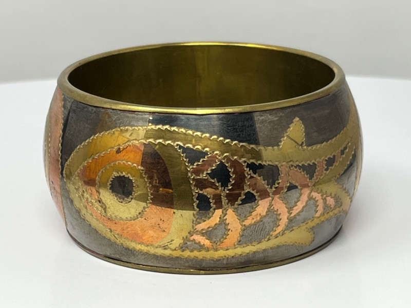 Lot # 45 - Mid‑Century Indian Hand‑Etched Mixed‑Metal Cuff Bracelet
