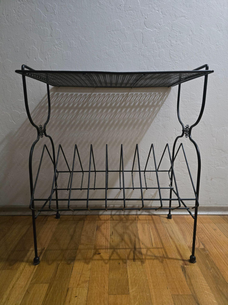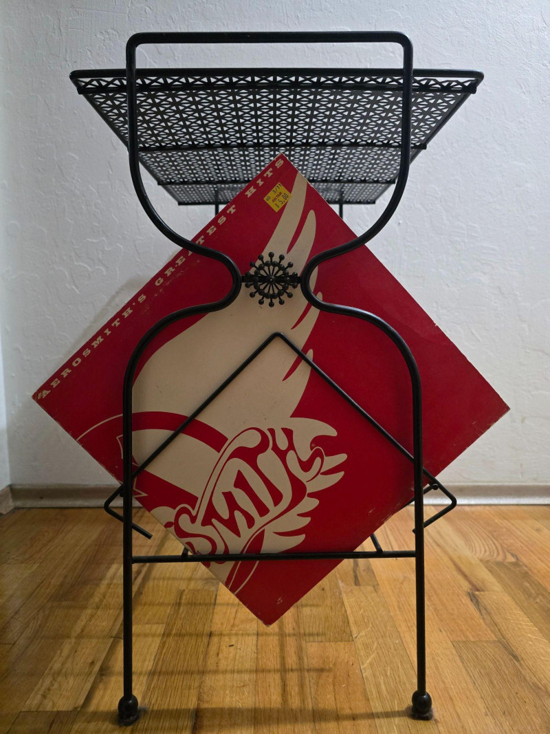 Lot # 48 - Mid Century Iron Vinyl Record Storage With Table Top