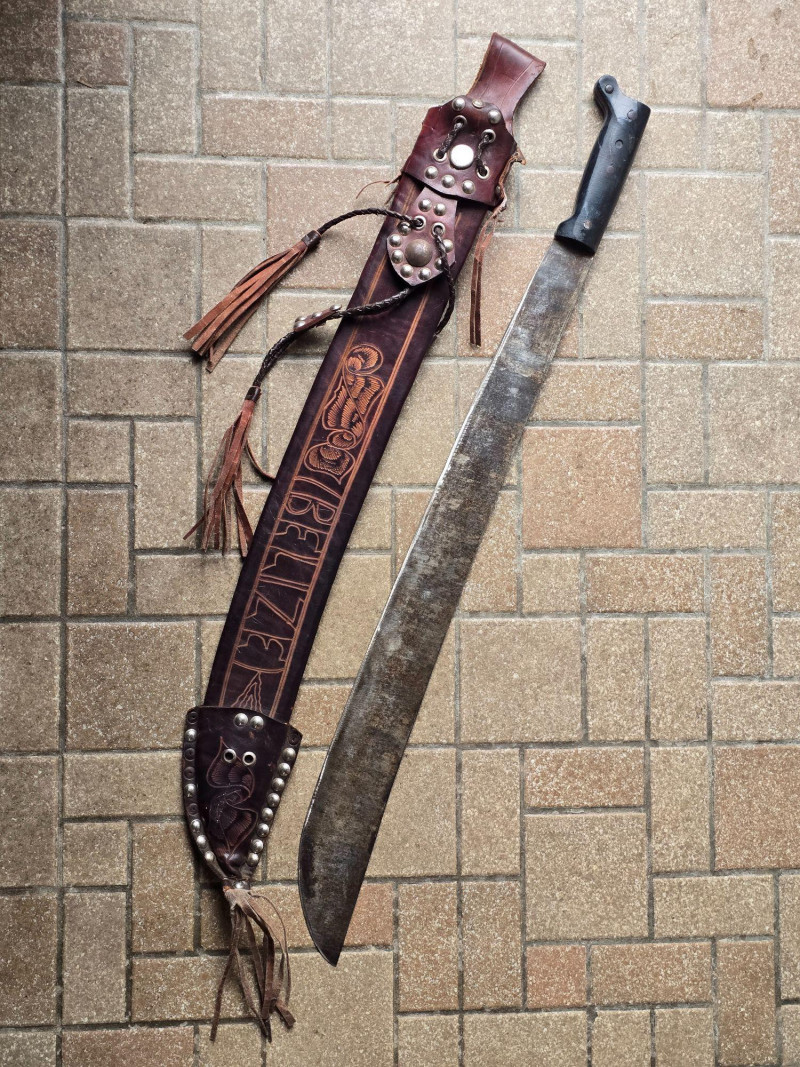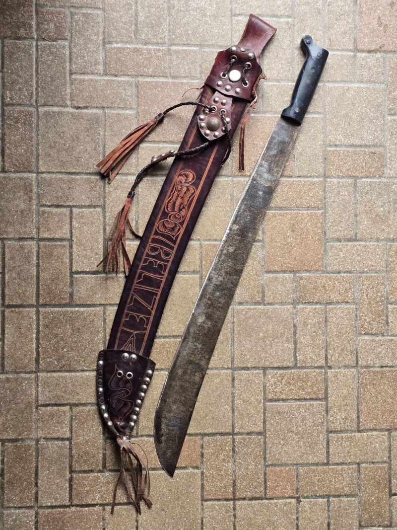 Lot # 52 - Vintage Belizean Machete in Hand‑Tooled Leather Sheath