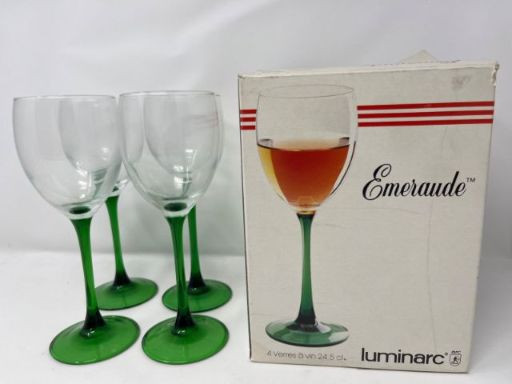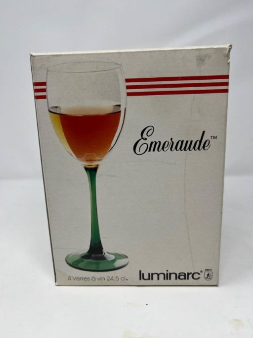 Lot # 86 - Luminarc “Emeraude” Wine Glasss In Original Box – French Pressed Glass