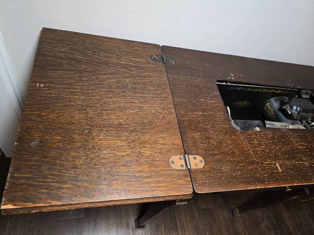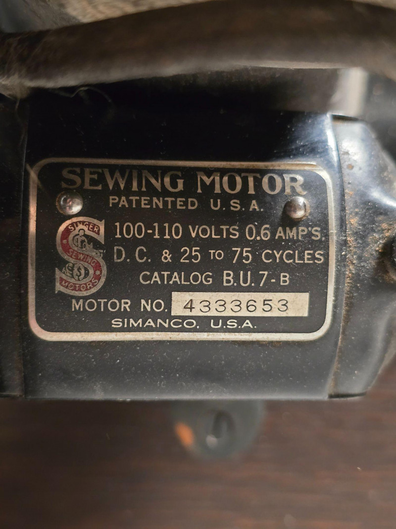 Lot # 106 - 1927 Singer Model 66 Sewing Electric Motor Machine & Original Table