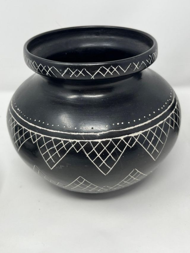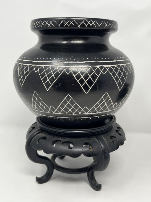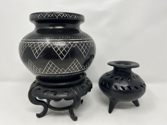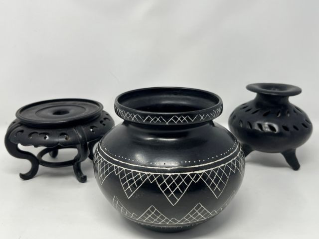Lot # 108 - Vintage Black Handmade Vases From Romania & Mexico With Stand