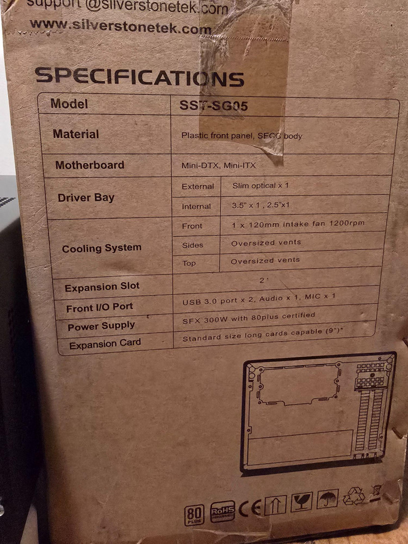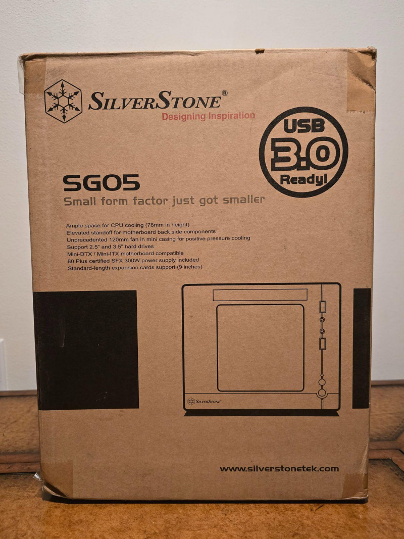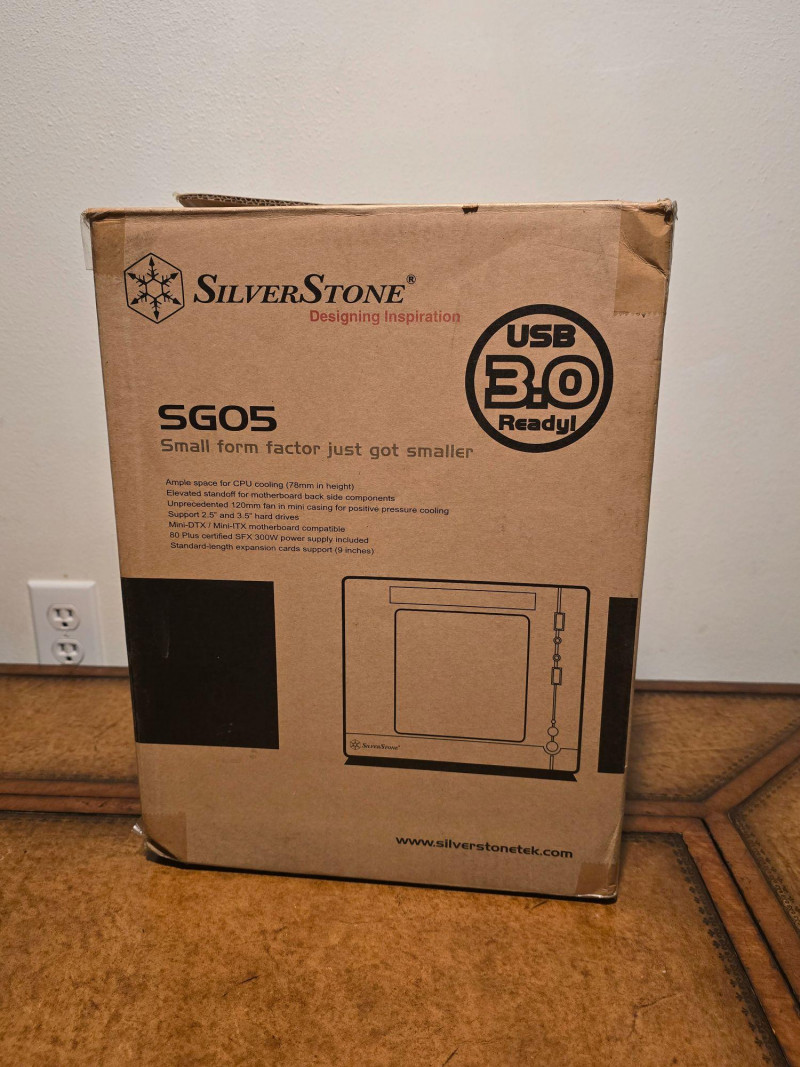 Compact SilverStone SG05 small‑form‑factor computer case with factory 300W SFX power supply. Ideal for Mini‑ITX or Mini‑DTX builds, media centers, or compact workstations. Unit has been tested and powers on. No manual or power cord included. Model: SilverStone SST‑SG05
