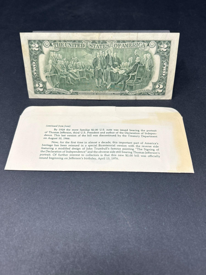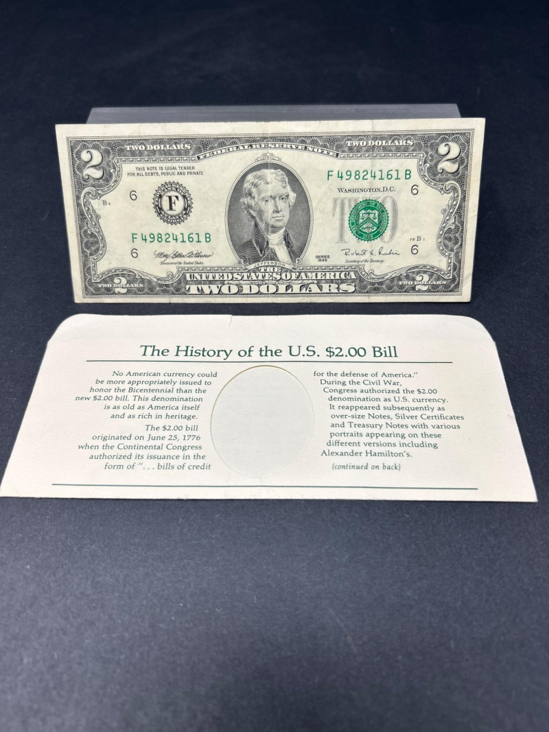 Bright color retention; includes original “History of the U.S. $2 Bill” insert. Highlights: