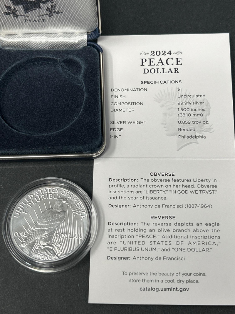 Lot # 115 - 2024 Peace Dollar (Philadelphia Mint) – Uncirculated Silver