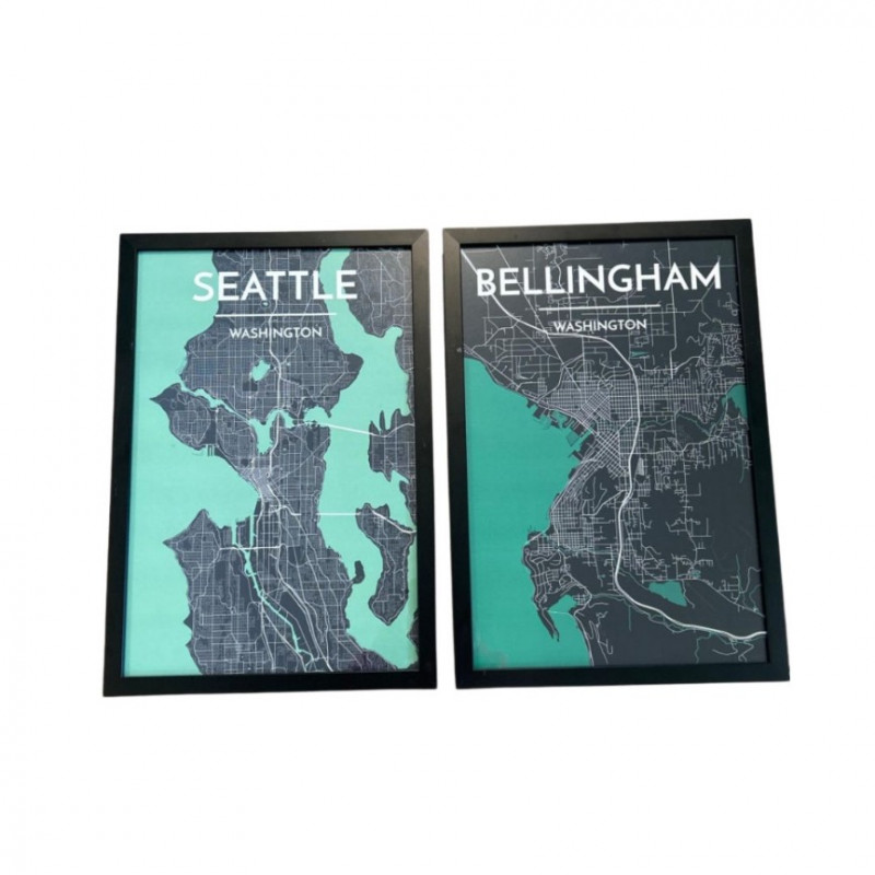 Lot # 96 - Framed City Map Prints — Seattle & Bellingham, Washington
