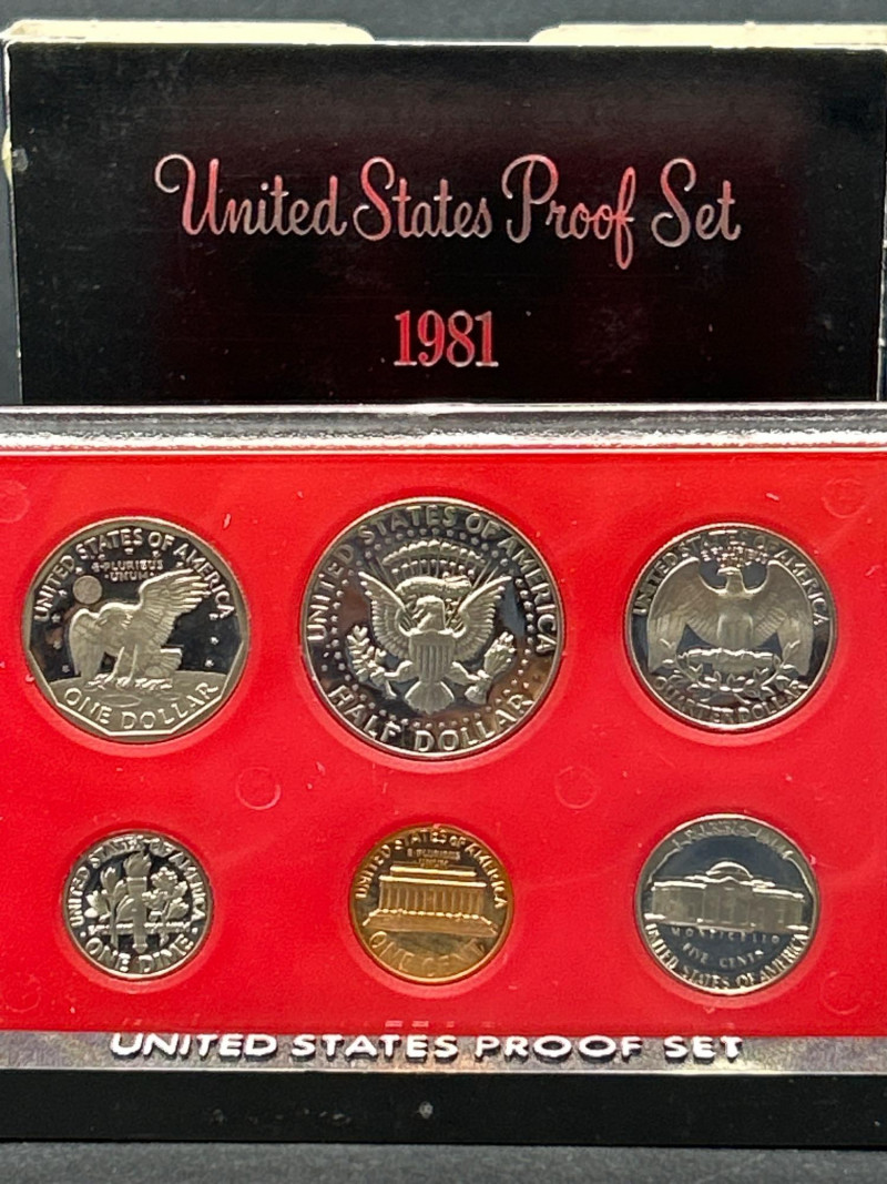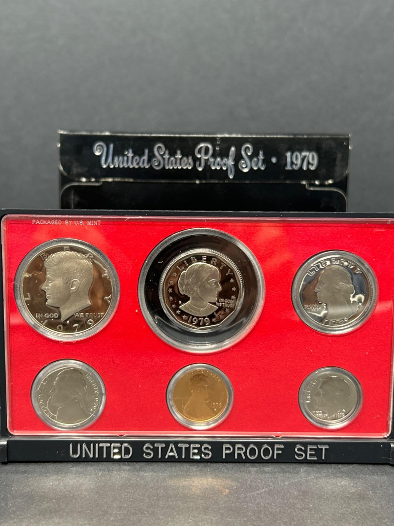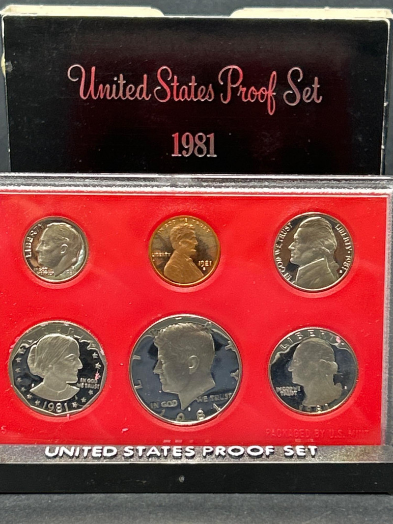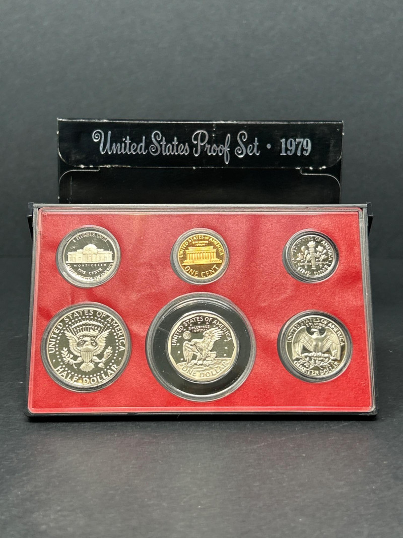 Includes six complete San Francisco–minted Proof Sets. 1979–1981 sets feature the Susan B. Anthony dollar; 1982 set includes five coins (no dollar issued). Possible Type 1 / Type 2 mintmark varieties in 1979-S and 1981-S (not attributed; buyers should review photos). Original government packaging with moderate shelf wear; lenses intact and coins display deep mirrors. Why Collect: