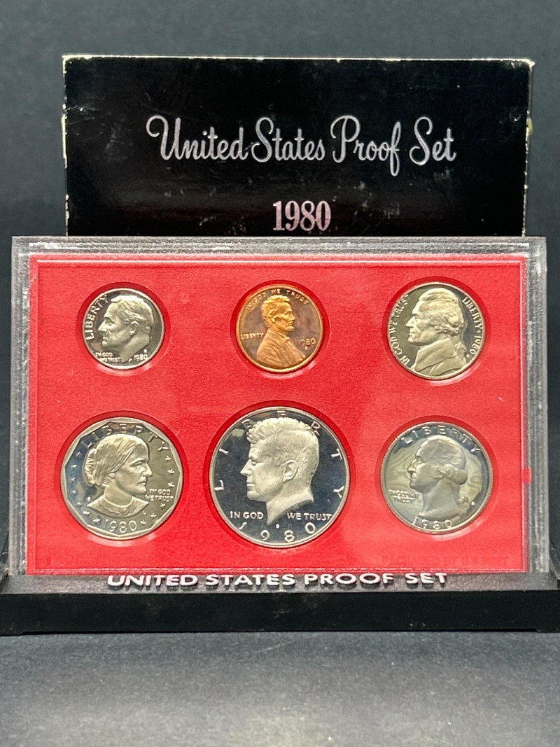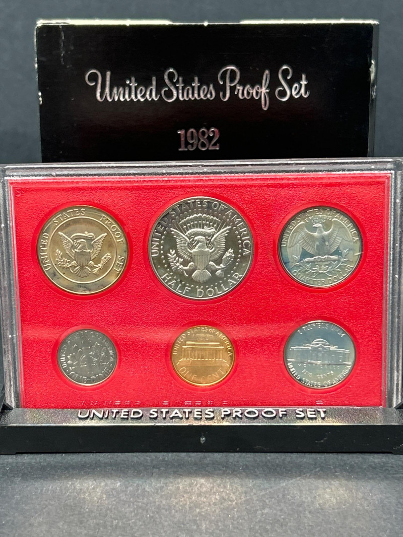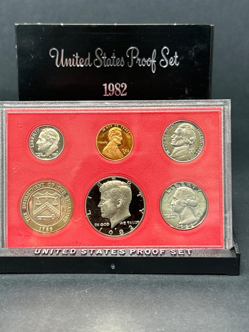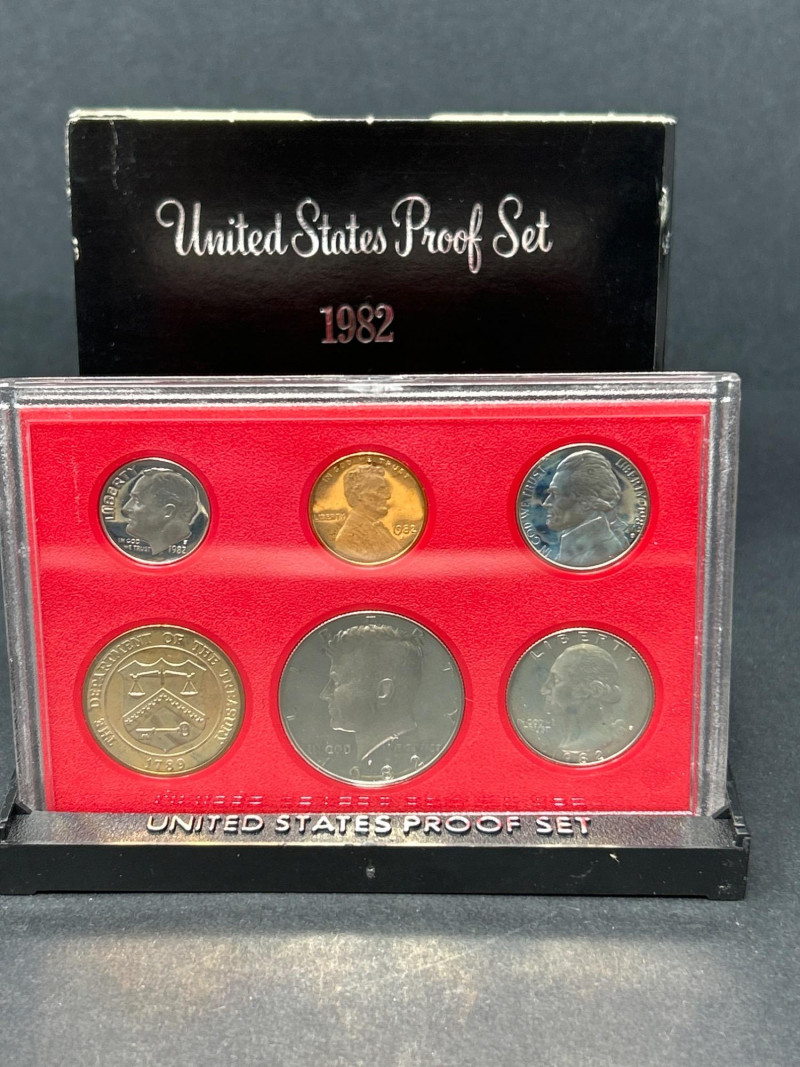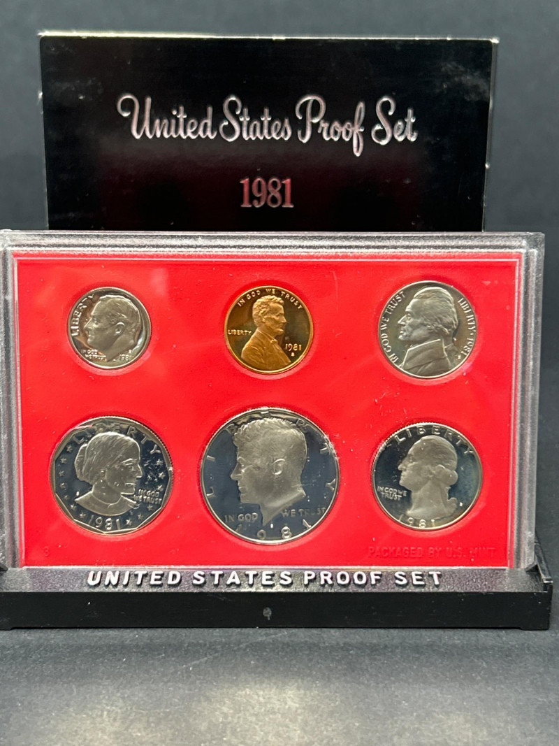 Includes six complete San Francisco–minted Proof Sets. 1979–1981 sets feature the Susan B. Anthony dollar; 1982 set includes five coins (no dollar issued). Possible Type 1 / Type 2 mintmark varieties in 1979-S and 1981-S (not attributed; buyers should review photos). Original government packaging with moderate shelf wear; lenses intact and coins display deep mirrors. Why Collect: