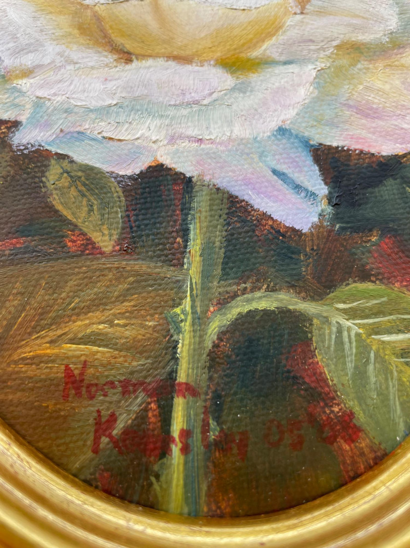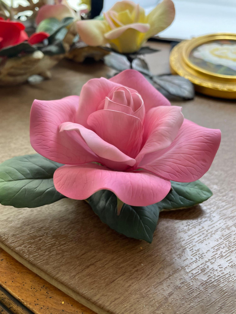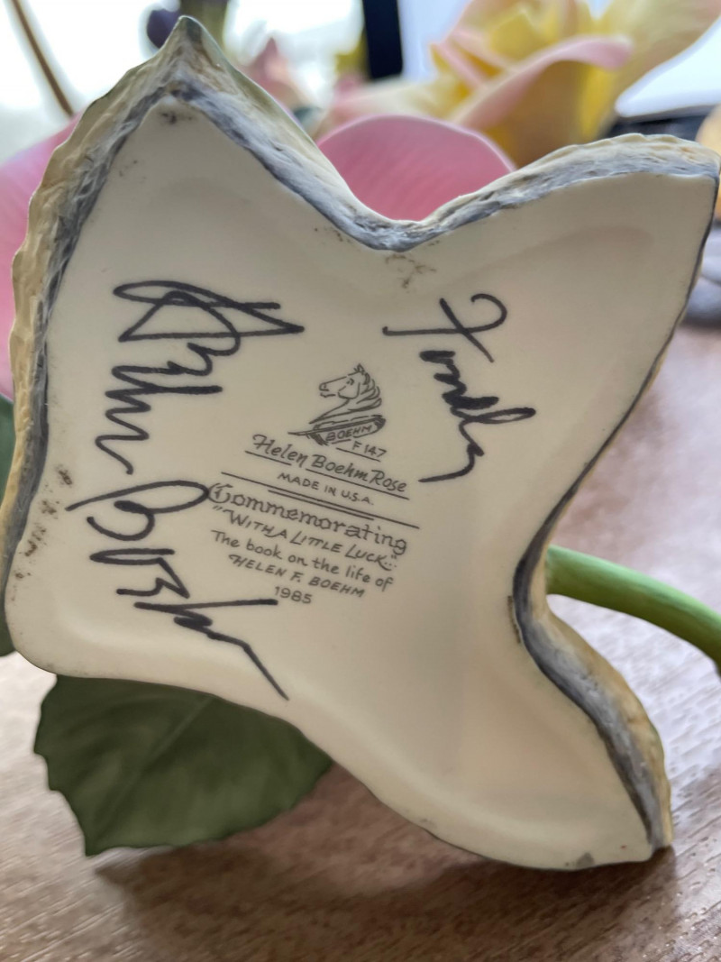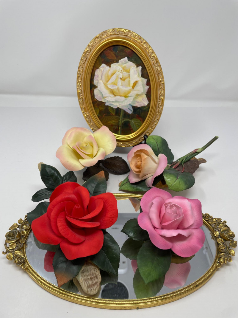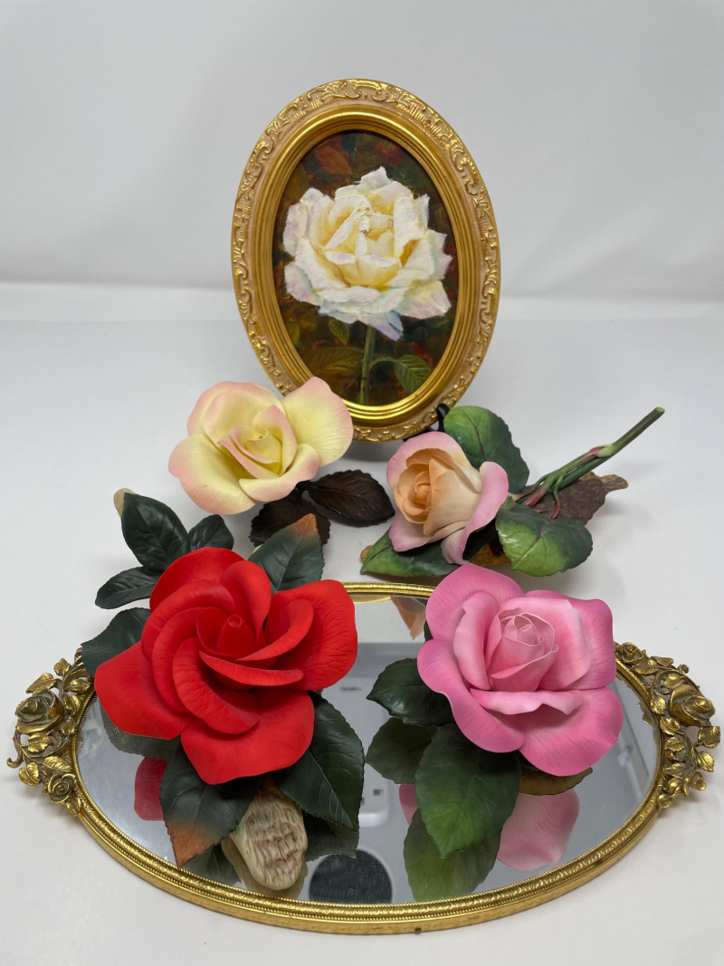 Lot # 81 - Four Boehm Rose Figurines, Painted Rose Picture and Gold Mirror