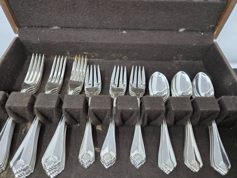 Lot # 142 - 65 Piece Oneida Silver Plated 12 each, with 5 Serving Pieces
