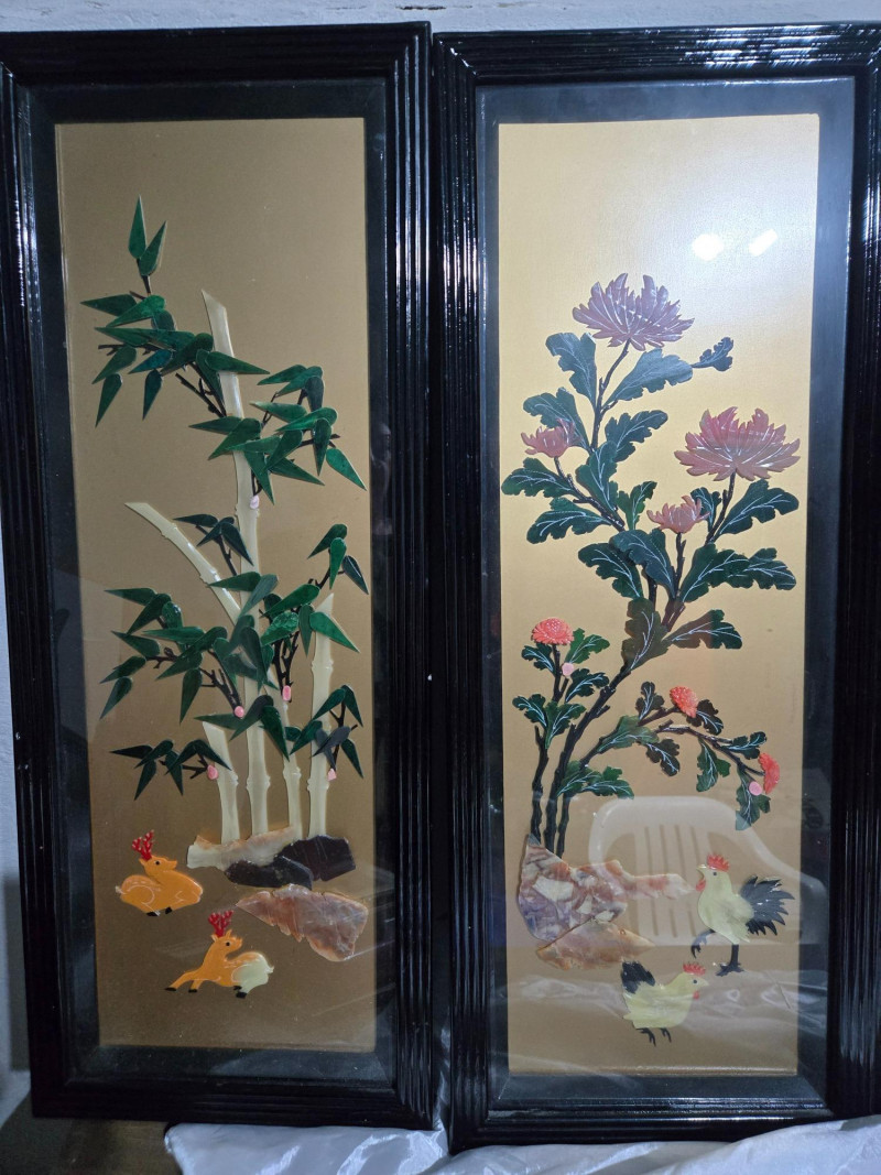 Lot # 144 - 4 Asian-inspired lacquer art panels w/intricate designs
