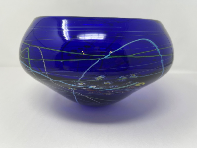 Lot # 15 - Vintage Hand-Blown Cobalt Blue Art Glass Bowl with Millefiori & Swirl