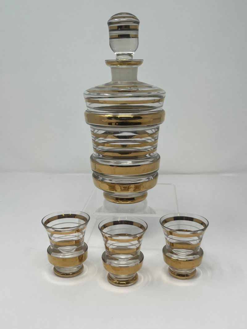 Lot # 21 - Vintage Art Deco Liqueur Decanter Set with 3 Shot Glasses