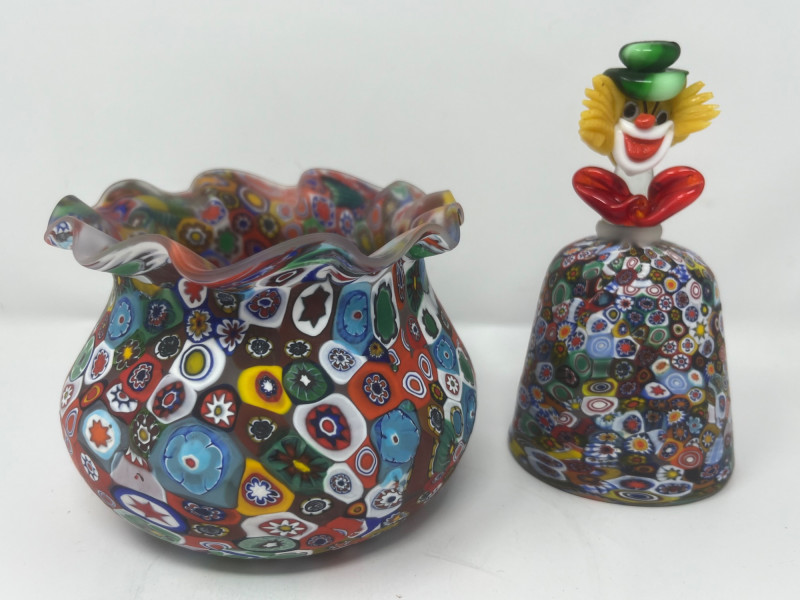 Lot # 32 - Vintage Murano Millefiori Glass Vase and Clown Figurine Set