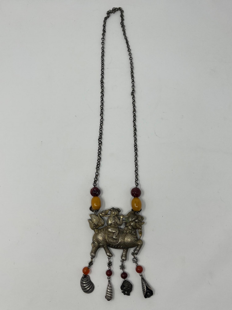 Lot # 39 - Qing Dynasty Silver Necklace- Boy on Qilin