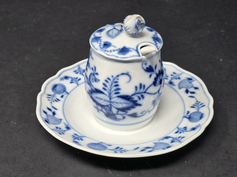 Lot # 43 - Meissen Blue & White Porcelain Condiment Jar – Lid, Spoon and Saucer