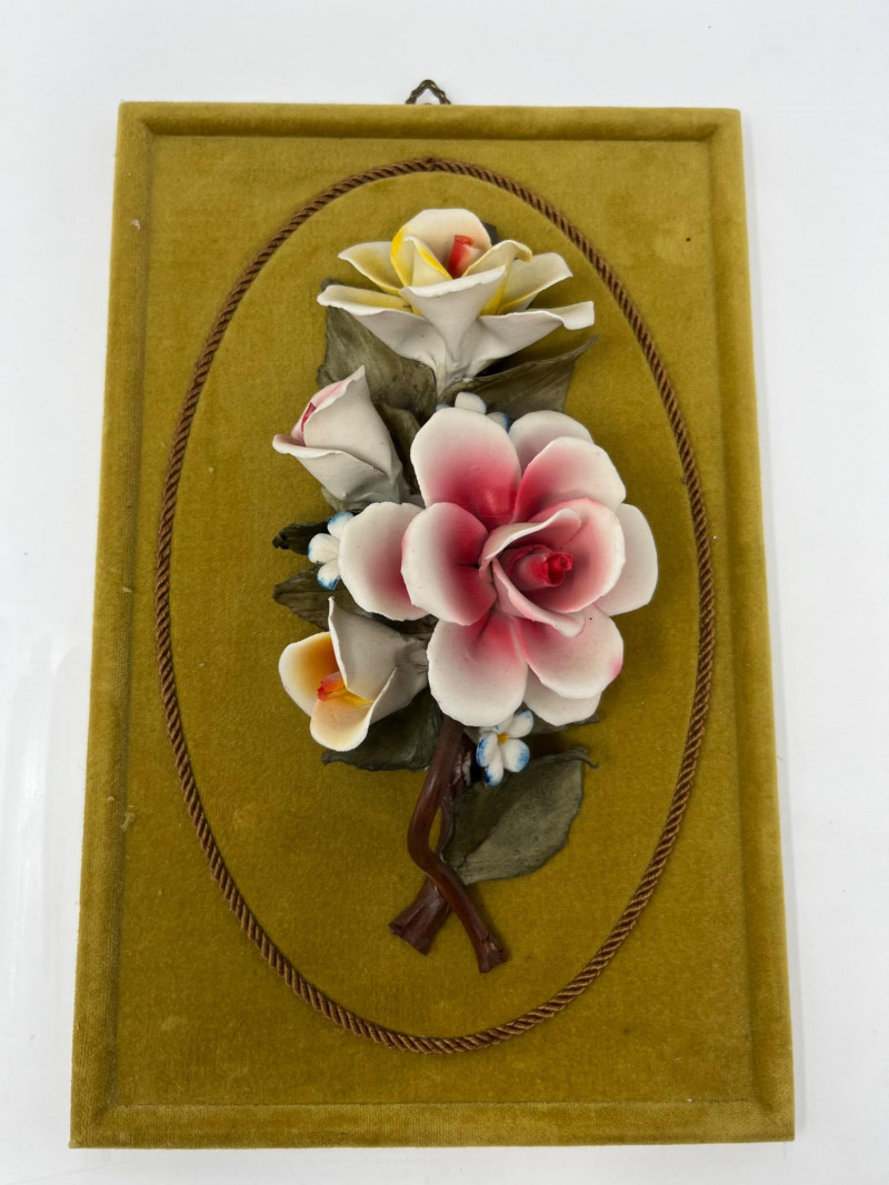 Lot # 75 - Vintage Napoleon Capodimonte Porcelain Floral Wall Hanging Plaque