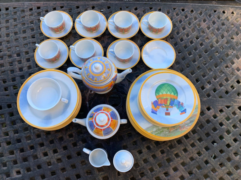 Lot # 110 - Williams Sonoma "Montgolfiere" Hot Air Balloon Dinnerware Set