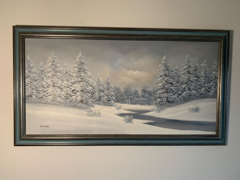 Lot # 128 - Vintage Original Signed Barrister Oil Painting Winter Snow Landscape