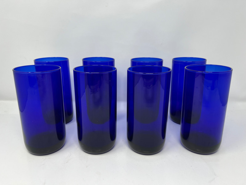 Lot # 137 - et of 8 Vintage Libbey Cobalt Blue Glass Tumblers – 16 oz Flare Style