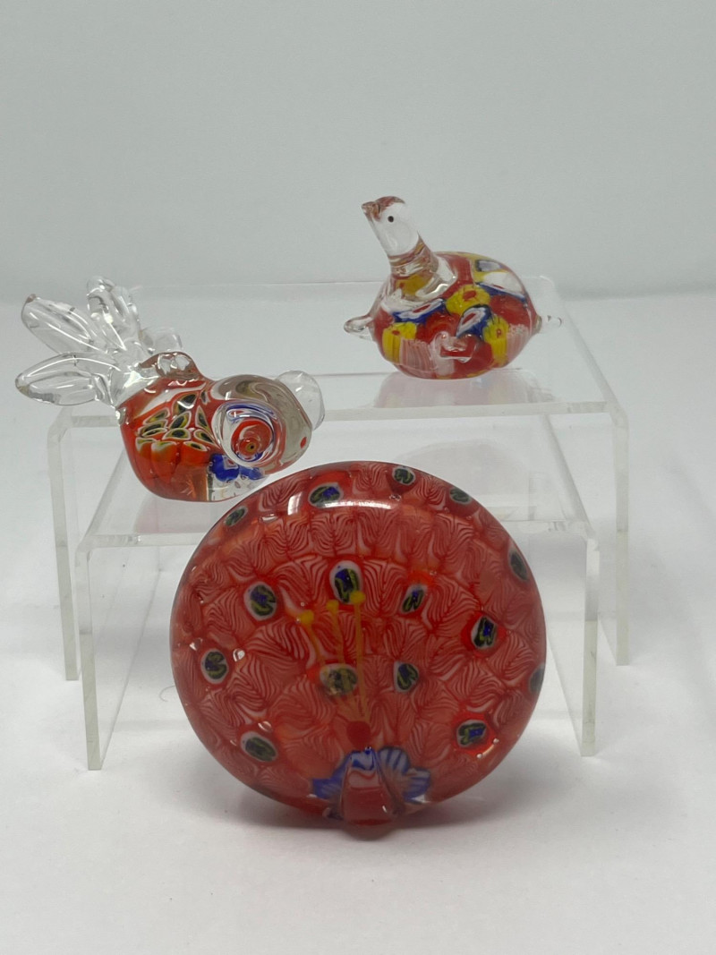 Lot # 187 - Vintage Murano-Style Millefiori Glass Paperweight & Figurine Animals