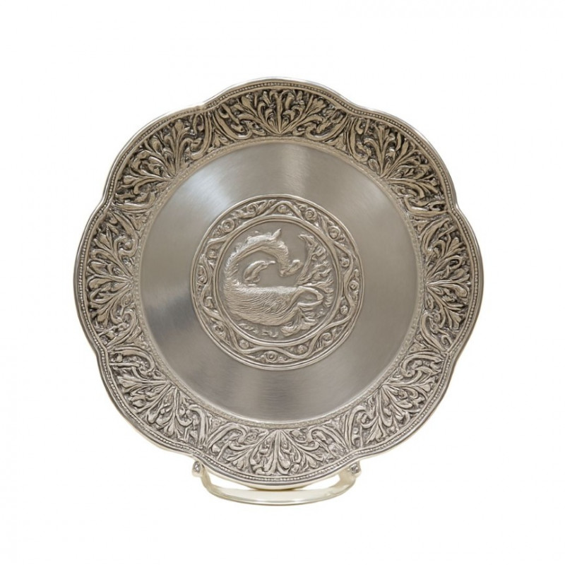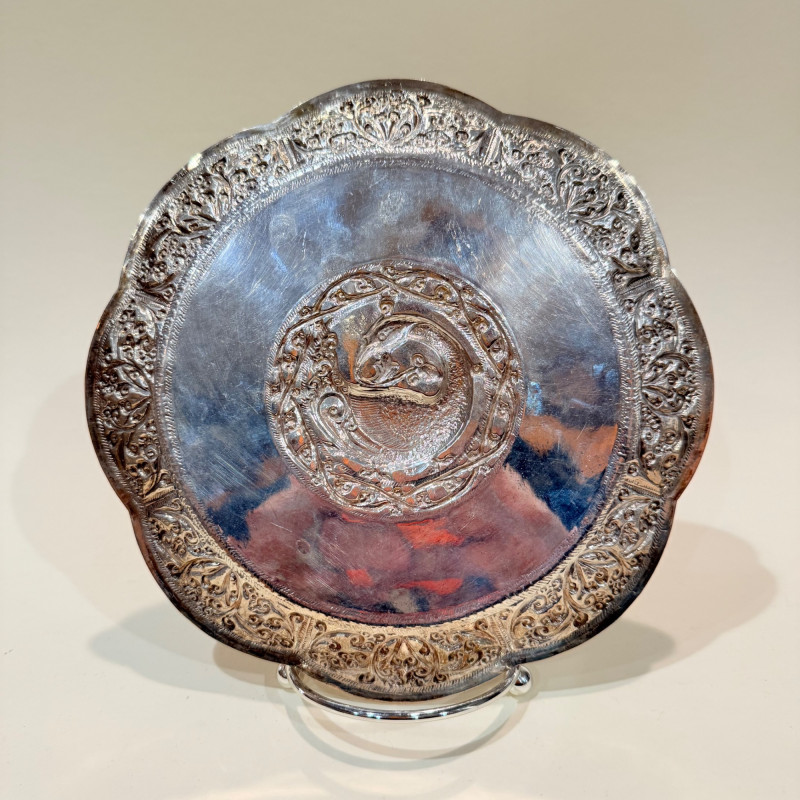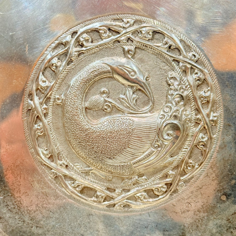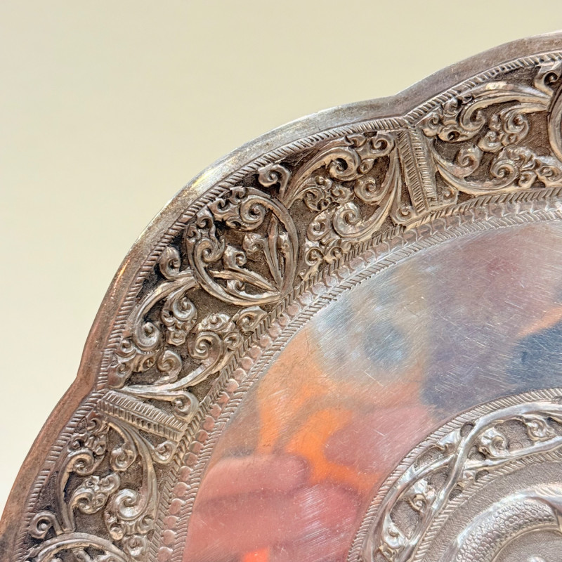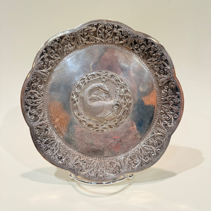 Lot # 20 - Thai Sterling Silver Embossed Peacock Center With Ornate Foliate Plate