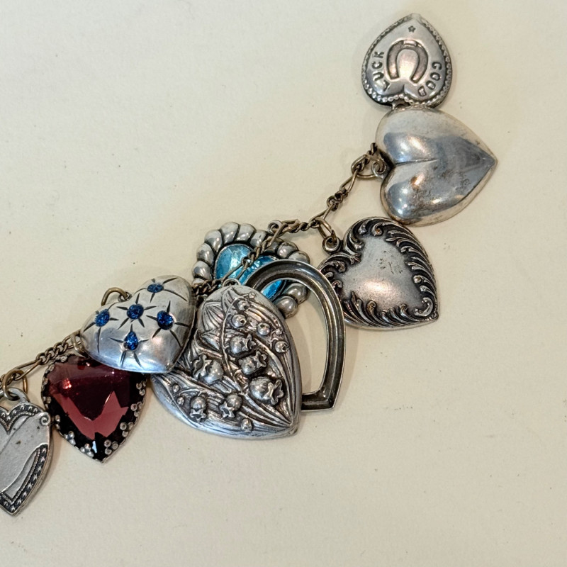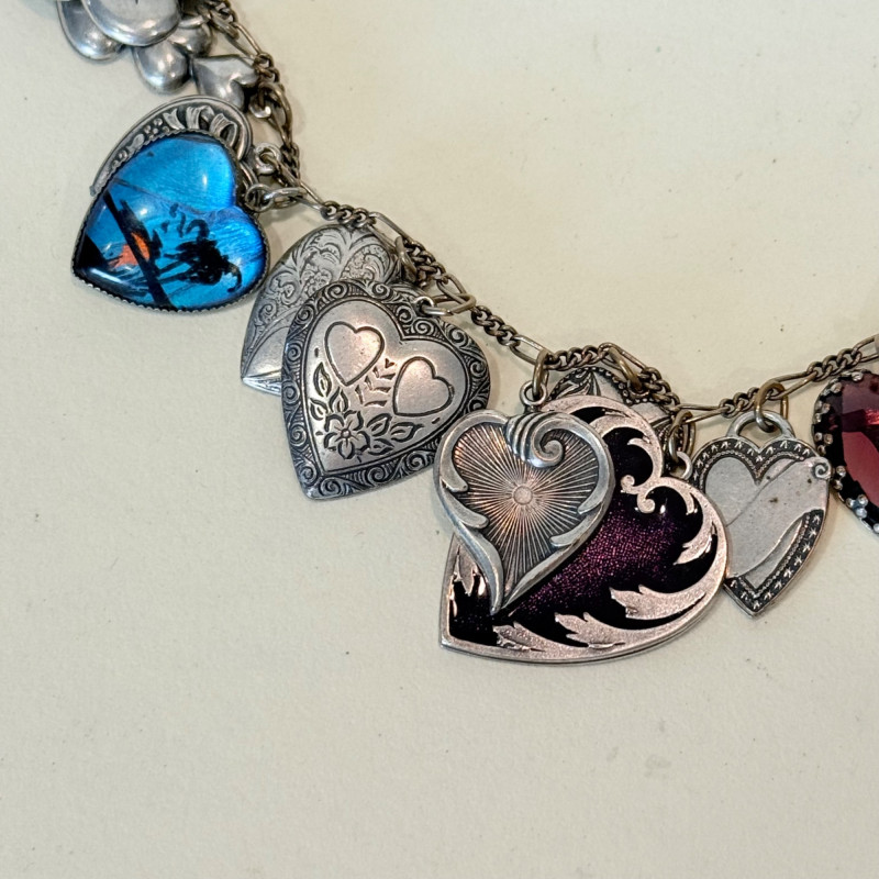 Charms: 11 hearts with enamel, engraving, and embossed detail