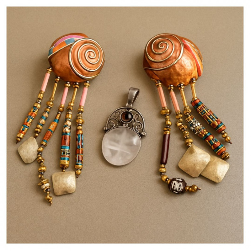Lot # 105 - Artisan Made Earrings and Sterling Pendant