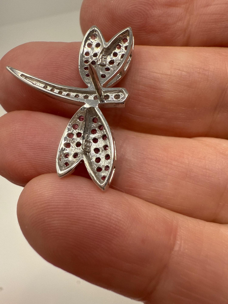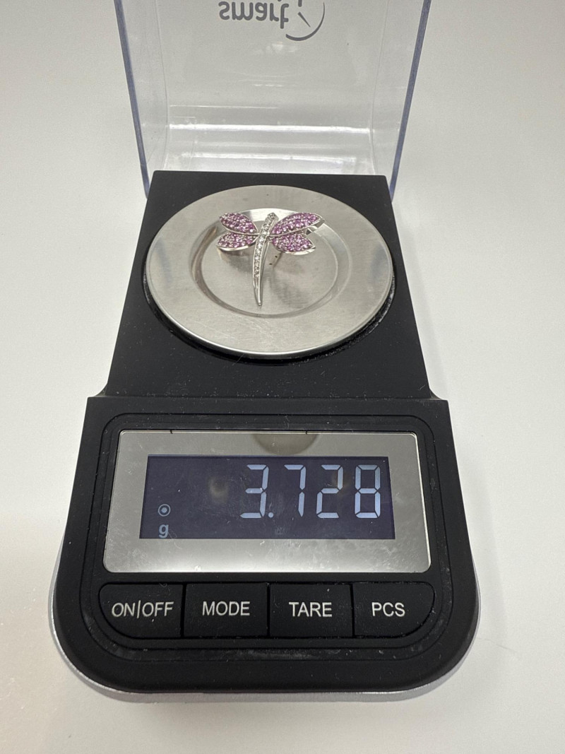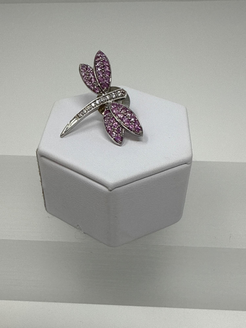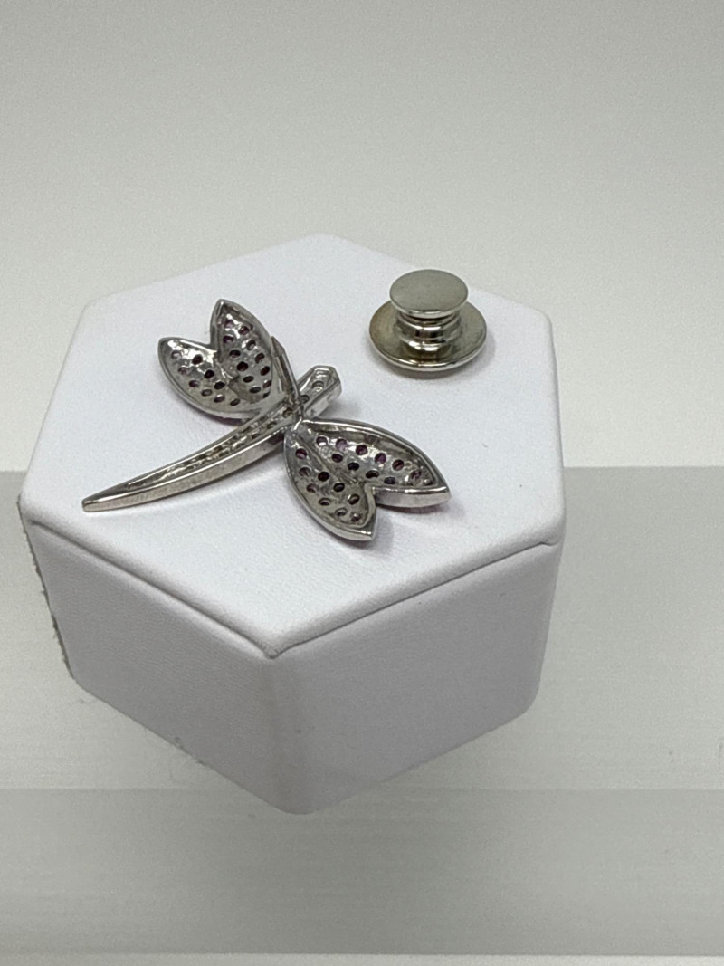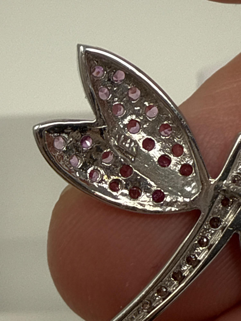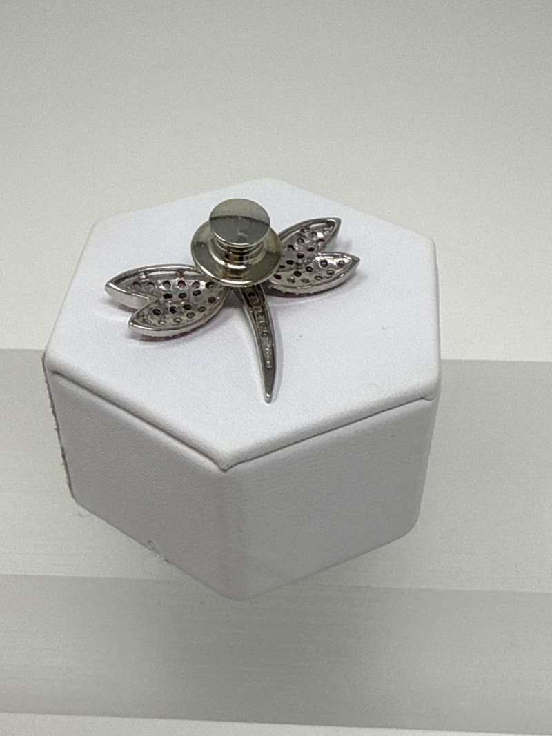 Lot # 109 - 14K White Gold Dragonfly Brooch – Pink Sapphire & Diamond – 3.728g