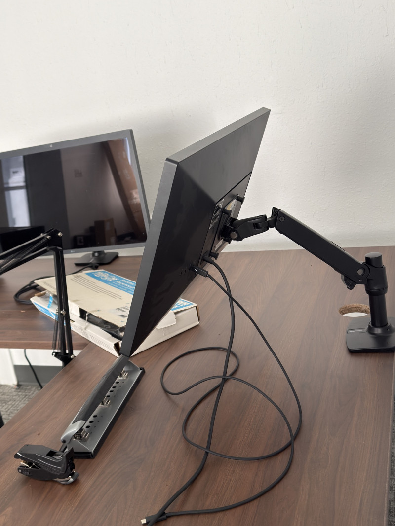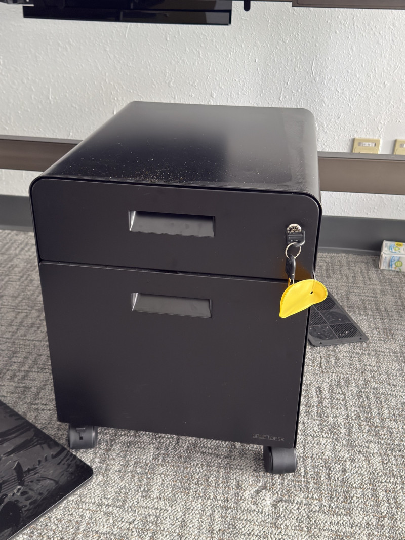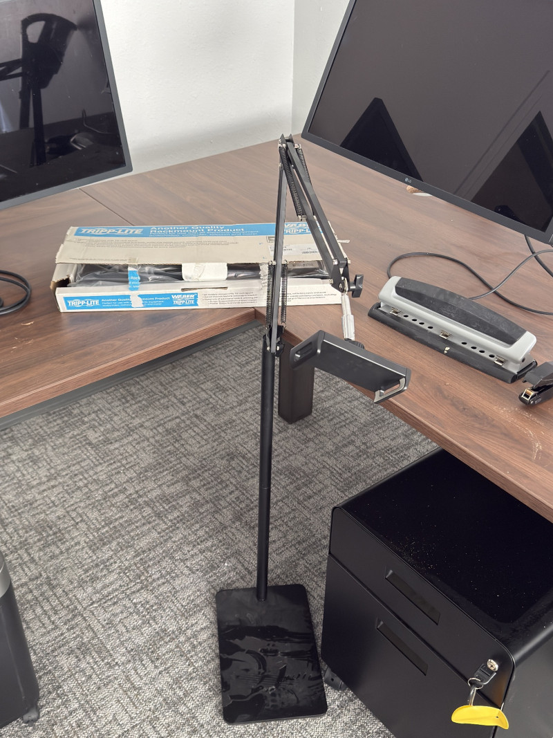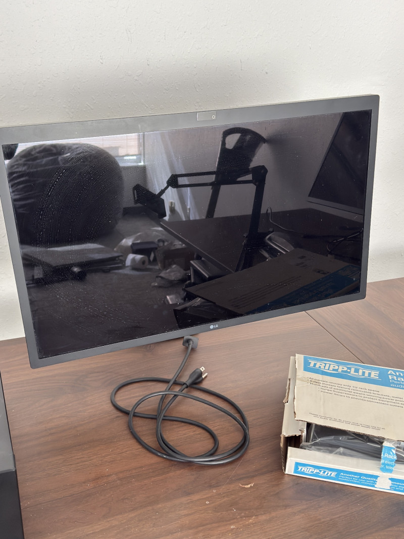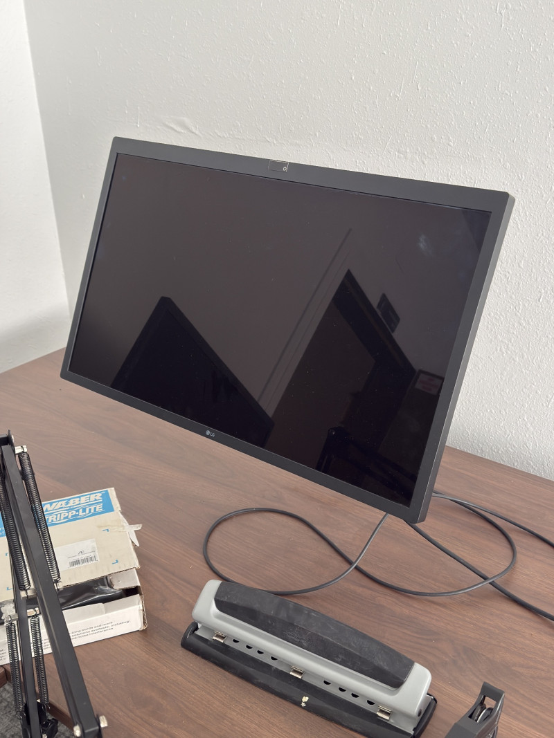 Complete Modern Office Setup – Uplift Desk, Electronics, and Accessories Elevate your workspace with this full office bundle, combining ergonomic design, reliable tech, and professional-grade accessories: Uplift Desk L-Shaped Electric Sit/Stand Desk – premium height-adjustable desk system with walnut surface, dual-motor lift, and sturdy steel frame. Retail new: ~$1,200+. LG Monitors (x2) – slim LED displays, perfect for dual-screen productivity setups. SilverStone Desktop Computer Tower – compact horizontal case with USB front ports (internal specs not verified, sold as-is). Fellowes Paper Shredder – wheeled crosscut shredder for office document security. Locking Black Metal File Cabinet – 2-drawer mobile storage unit with included key. Tripp Lite Waber Rackmount Power Distribution Unit (Model PDU1220T) – brand new in box. Retail value: ~$120. Tripp Lite Surge Protector – unopened in box, commercial-grade extension protection. Adjustable Microphone Boom Arm with Stand – podcasting or streaming-ready floor stand. Miscellaneous Accessories – hole punch, desk organizer, and assorted cabling included. Desk Measurements (approx.): Long side: ~72” Short side: ~60” Depth: ~30”