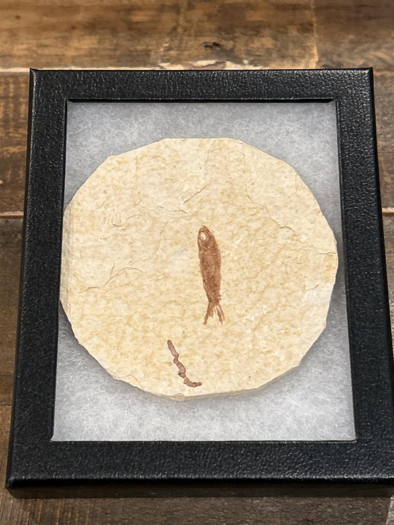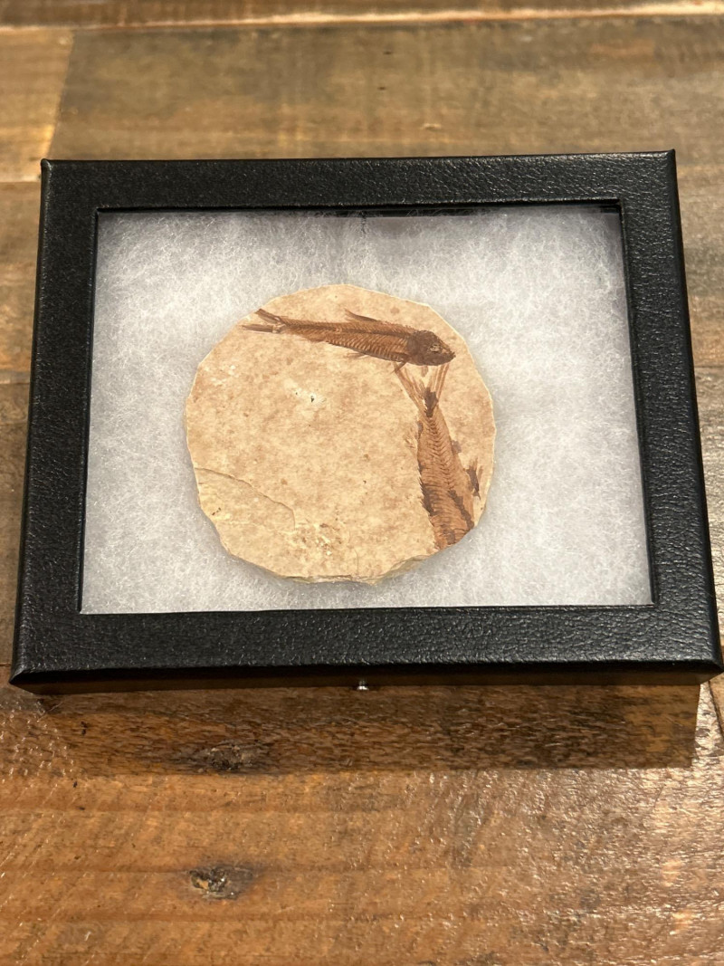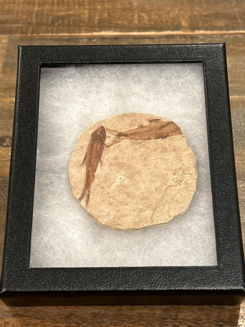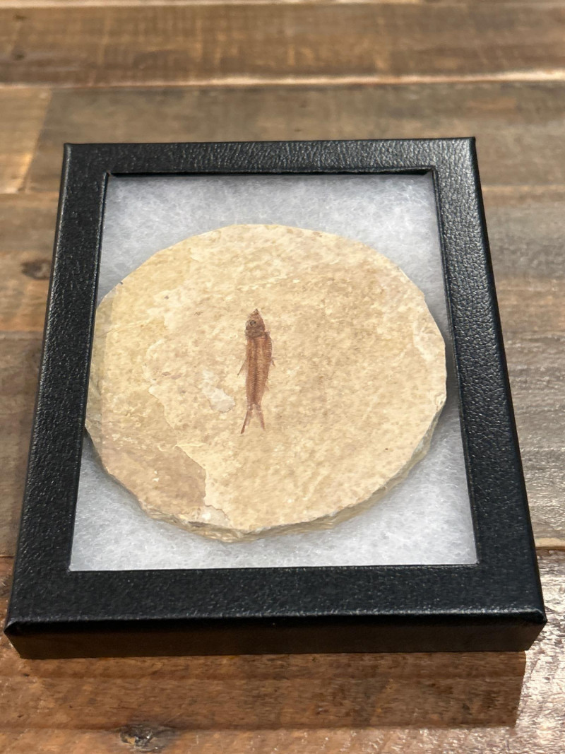 A striking set of three fossilized fish specimens from the extinct genus Knightia sp., embedded in natural sedimentary slabs from the Green River Formation, USA. These compression fossils date back to the Eocene Epoch (56–33.9 million years ago) and showcase the remarkable preservation conditions of ancient freshwater lakebeds. Each specimen displays distinct anatomical features—visible fin rays, vertebral columns, and scale impressions—making this trio ideal for educational display, paleontological study, or private collection. Lot Includes: Three individual slabs, each containing a fossilized Knightia sp. Species: Knightia sp. (extinct freshwater fish) Fossil Type: Compression Geological Formation: Green River Formation Epoch: Eocene, Paleogene Period Average Specimen Size: 3–4 inches in length Total Weight: Approx. 2.05 kg Scientific Note: Knightia occupied a lower trophic level in ancient ecosystems and was commonly preyed upon by larger predatory fish such as Diplomystus, Mioplosus, and Phareodus—offering insight into Eocene food chains.