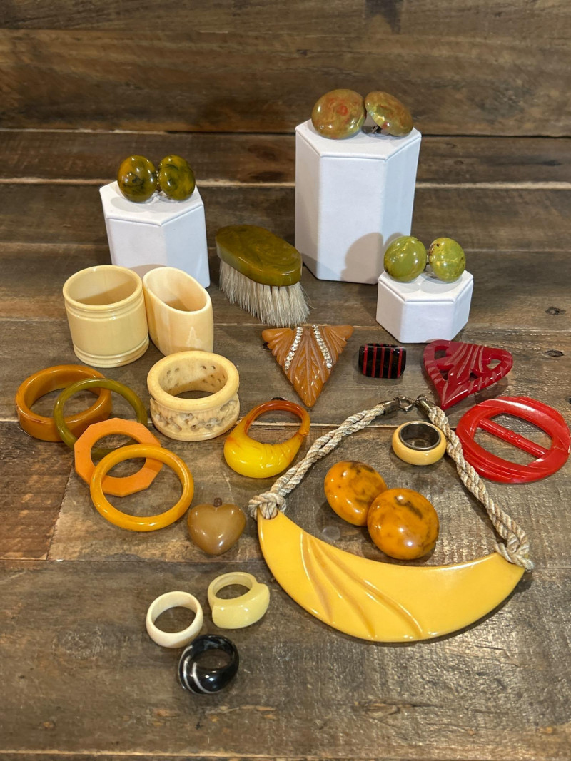 Lot # 64 - Art Deco Bakelite & Celluloid Jewelry and Napkin Ring Collection