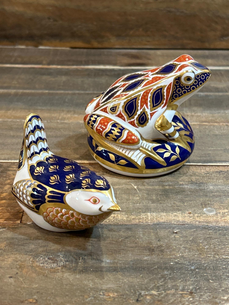 Lot # 83 - Pair of Royal Crown Derby Imari Porcelain Paperweights – Frog & Bird
