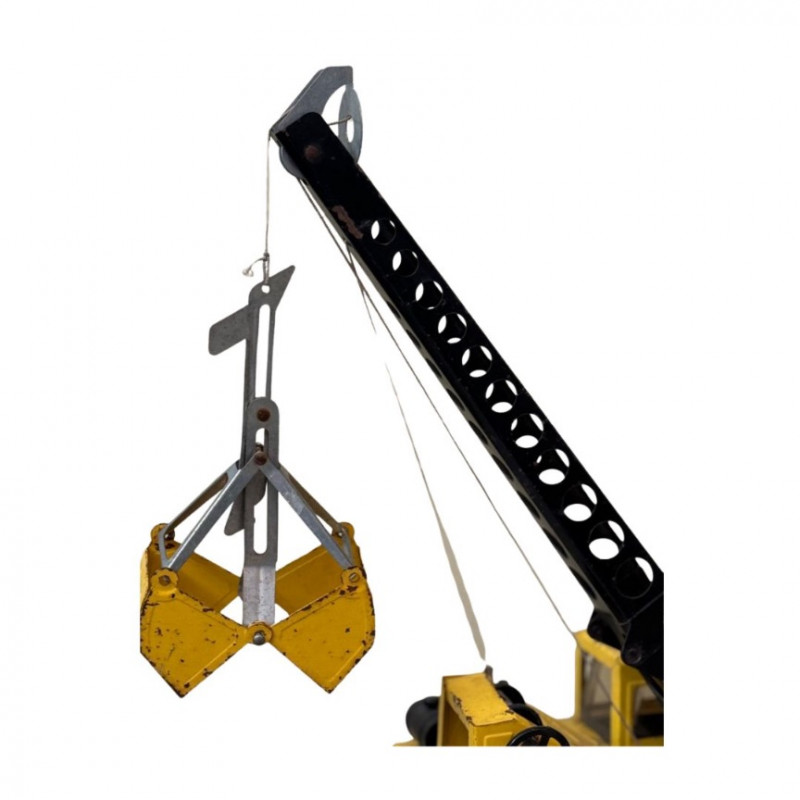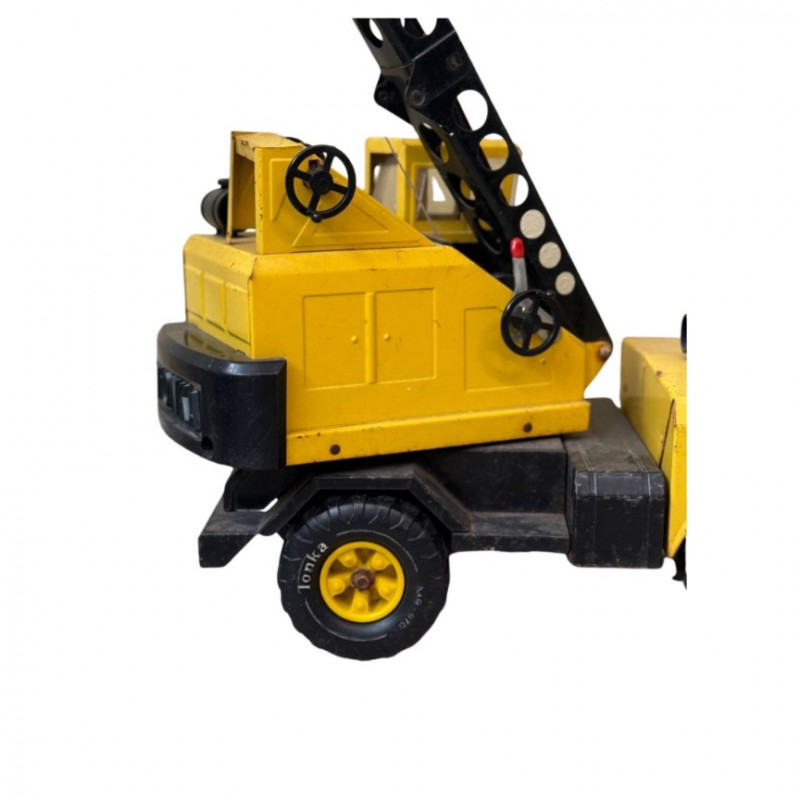 Vintage 1960s–1970s Tonka Pressed Steel Mighty Crane Truck A striking example of mid-century American toy craftsmanship, this vintage Tonka Mighty Crane Truck captures the rugged charm and durability that made Tonka a household name. Constructed from heavy pressed steel with authentic yellow and black detailing, this collectible features functional cranks, a fully extendable boom, and a working grabber arm—showcasing the mechanical ingenuity of the era. Produced by Tonka Corporation (Mound, Minnesota) between the late 1960s and early 1970s, this model remains a nostalgic symbol of postwar American play and design. The Lark construction series was celebrated for its lifelike industrial aesthetic and solid build quality, appealing to both children and collectors alike. Brand: Tonka Era: 1960s–1970s Material: Pressed steel with rubber tires Features: Working crane boom, grabber claw, hand crank, and rotating base Condition: Good vintage condition with light surface wear consistent with age Dimensions: Approx. 21” L × 8” W × 14” H A timeless collectible for vintage toy enthusiasts or industrial décor lovers—Tonka’s craftsmanship still stands the test of time.