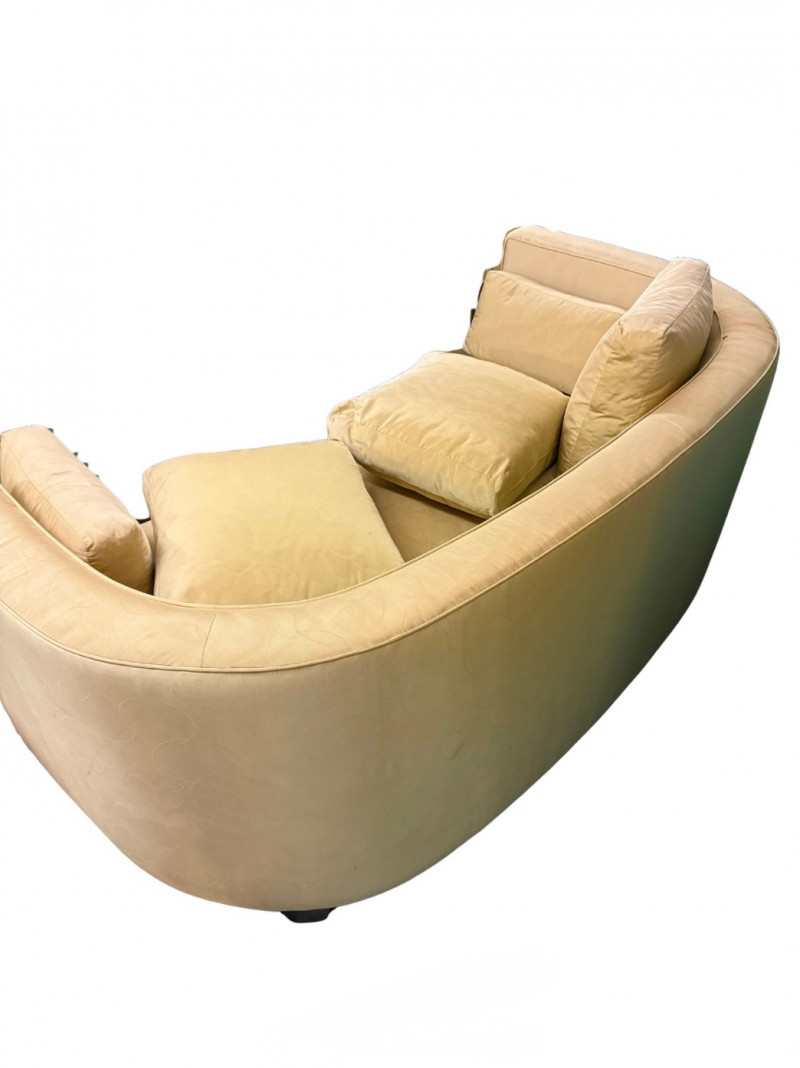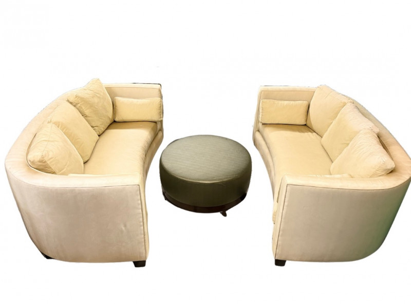 Lot # 11 - Pair of Curved Cream Sofas with Matching Round Ottoman-Councill