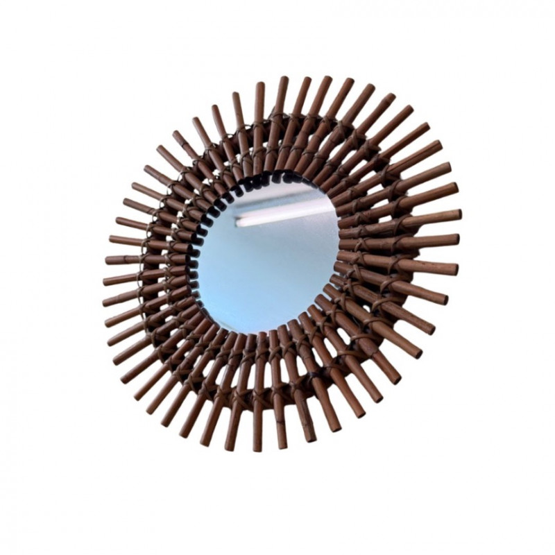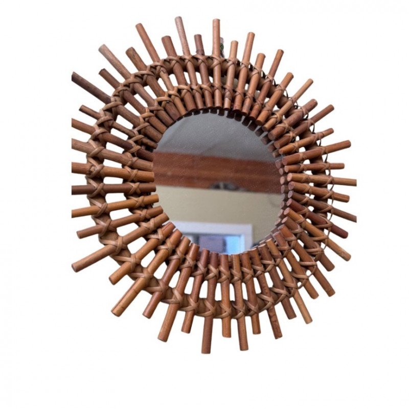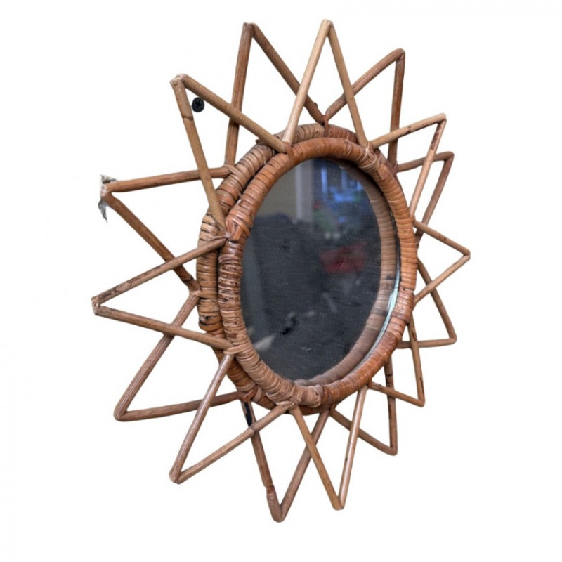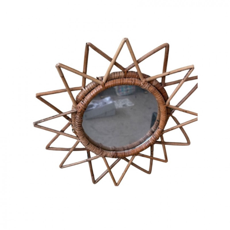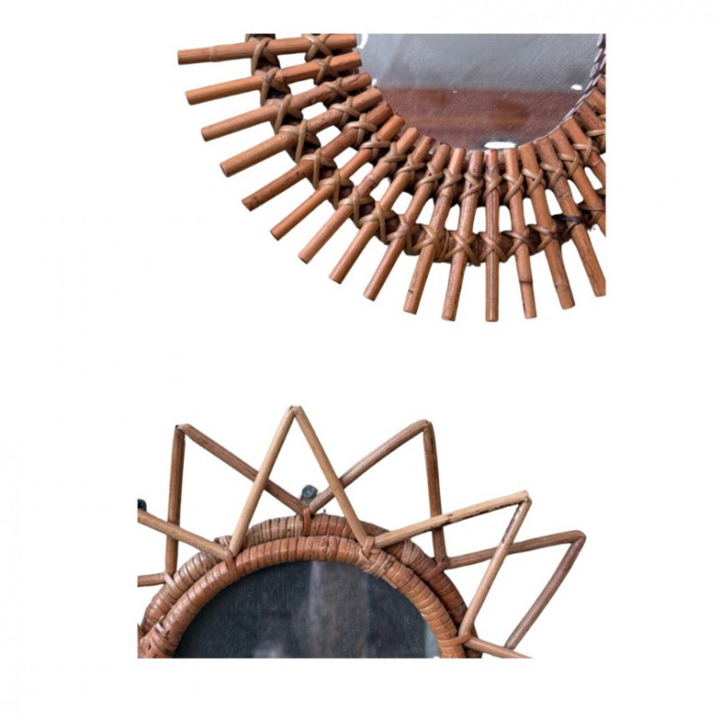 Set of 3 Magical Thinking Woven Wall Mirrors – Bohemian Rattan Sunburst Design Beautiful set of woven rattan wall mirrors from the Magical Thinking collection, each featuring a unique sunburst and geometric frame. Crafted with warm natural fibers, these mirrors add texture, dimension, and a touch of bohemian charm to any wall display. Perfect for hanging as a trio or styling individually in different spaces — they complement both modern and vintage-inspired interiors. Brand: Magical Thinking Design: Woven rattan in sunburst and starburst motifs Quantity: Set of 3 mirrors Condition: Excellent pre-owned condition with light wear consistent with age Dimensions: Approx. 12–15” diameter each