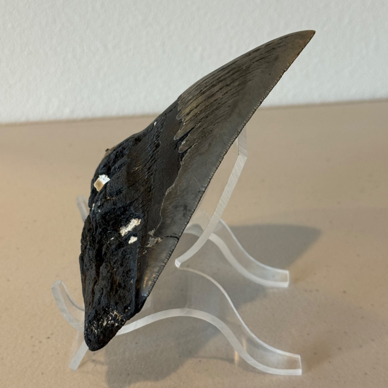 Megalodon teeth are among the most iconic and desirable marine fossils, valued for their impressive size and prehistoric origin. This specimen’s coloration and natural sheen make it a striking display piece for collectors, educators, or natural-history enthusiasts.