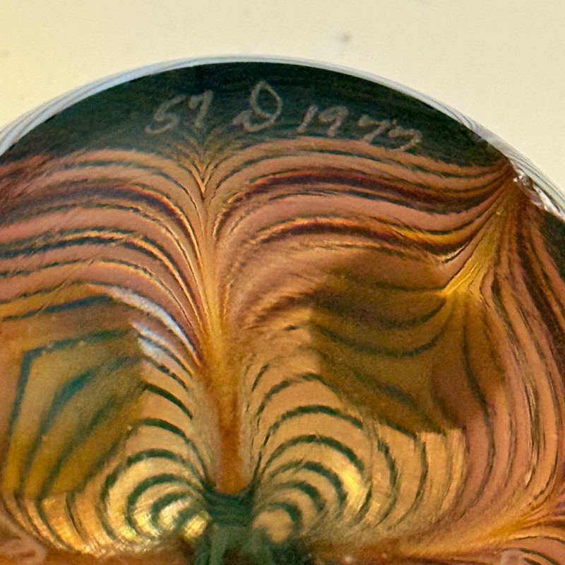 Lot # 27 - Orient & Flume Iridescent Paperweight – Signed “57 @ 1972”