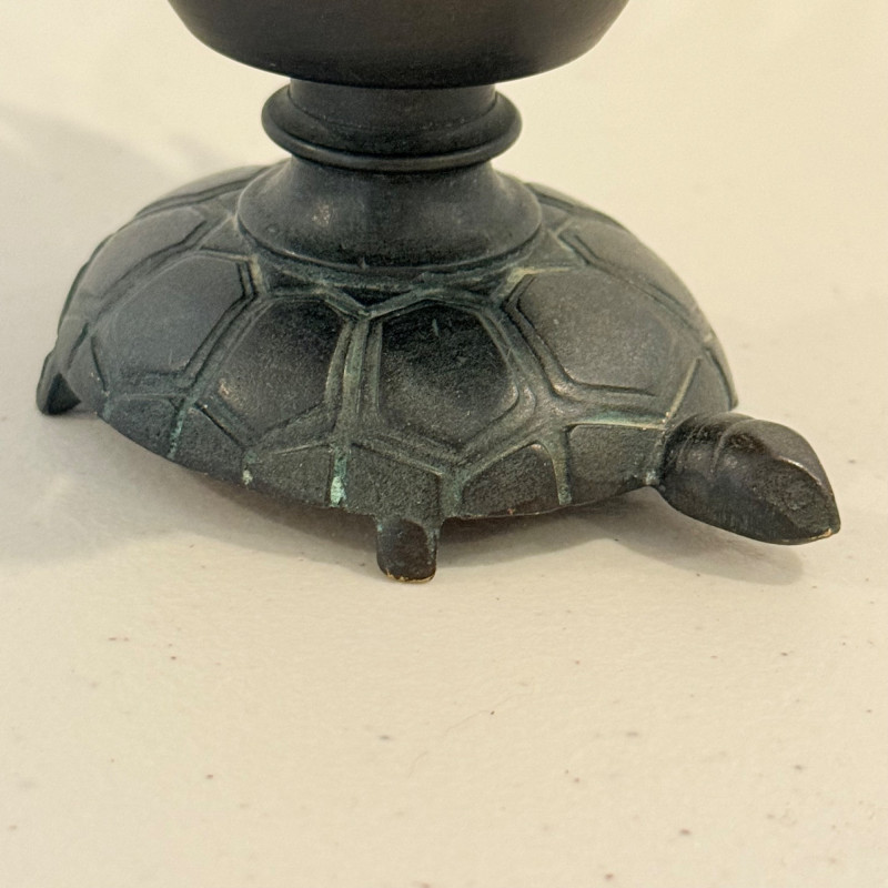 The lotus represents purity and enlightenment in Tibetan Buddhism, while the turtle embodies endurance and grounding. The squash blossom form of the snuffer symbolizes abundance and renewal, uniting ritual function with refined artistry.