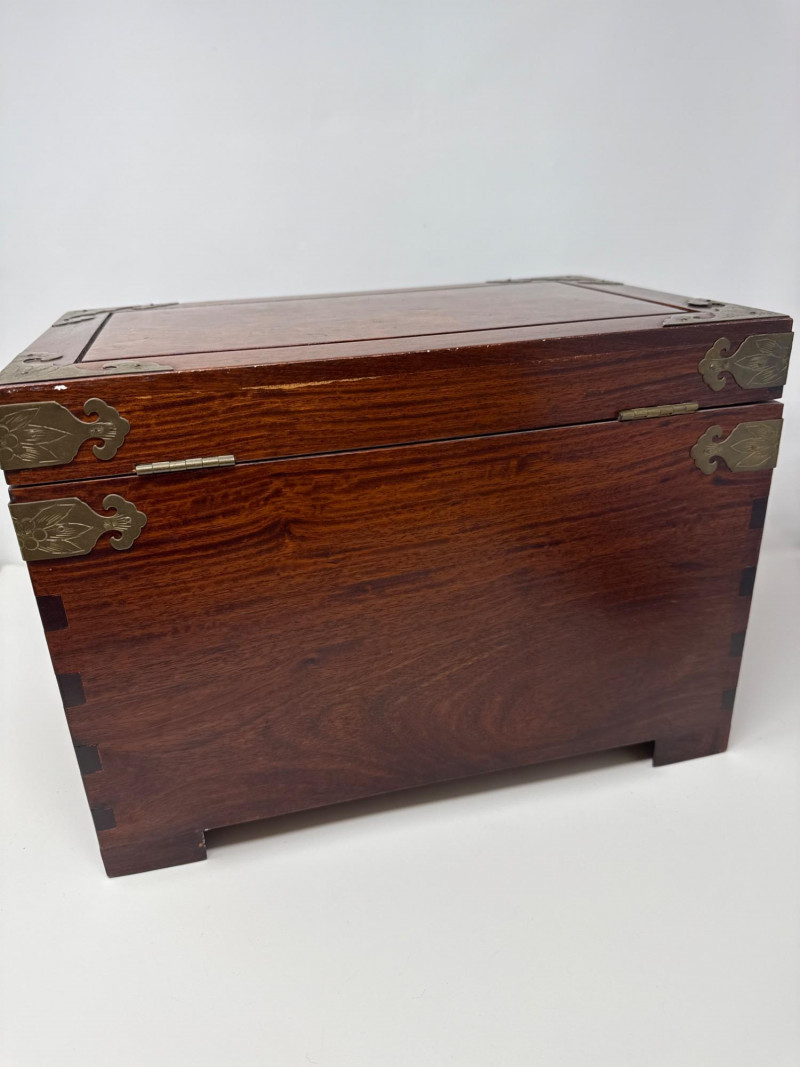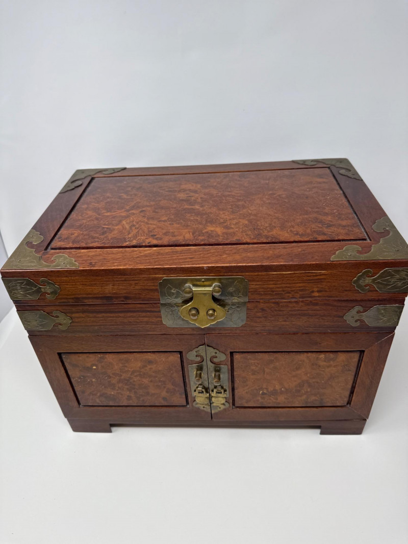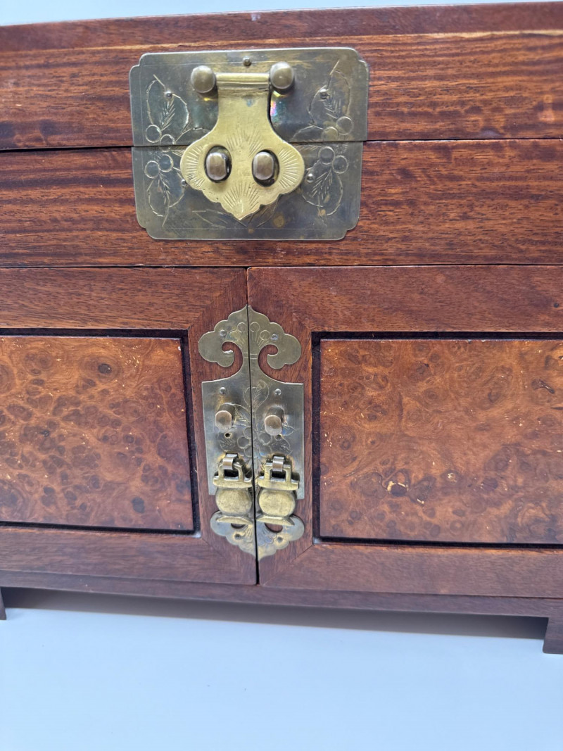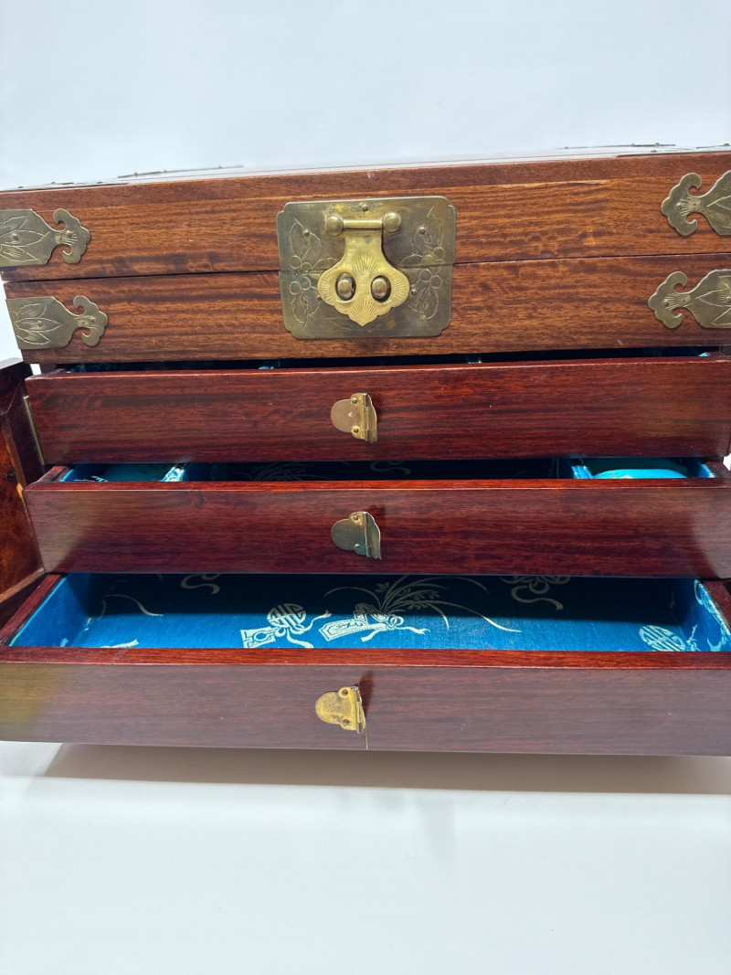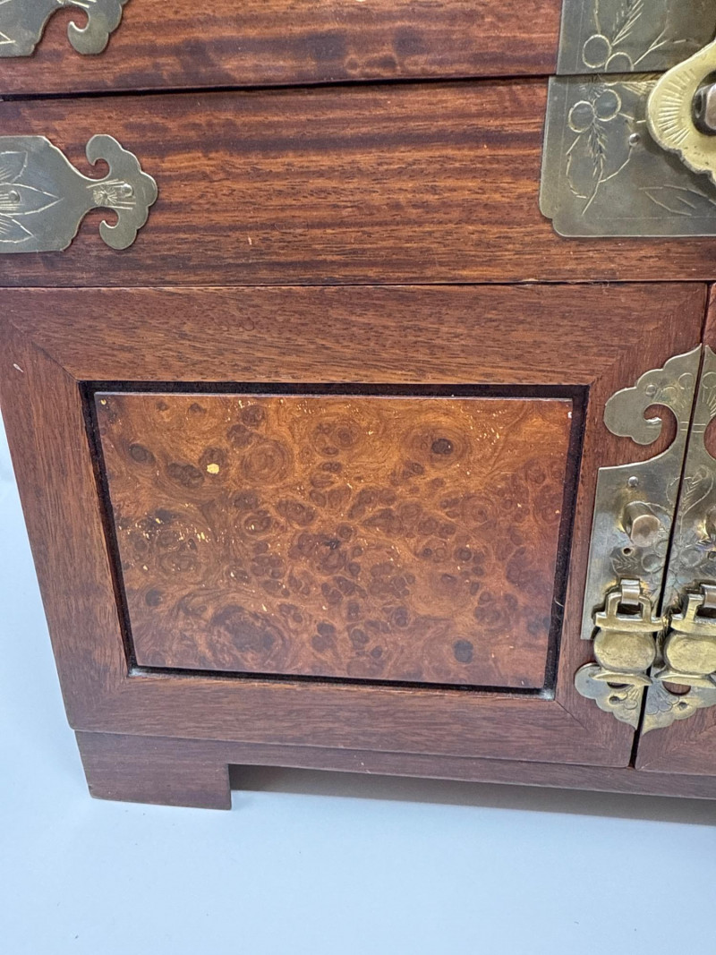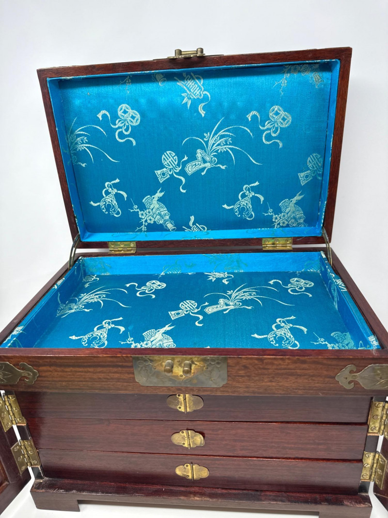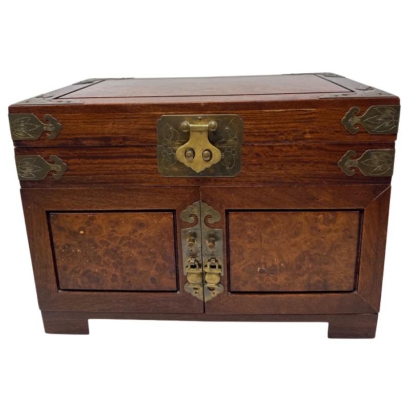 Lot # 48 - Vintage Asian Wood Jewelry Chest with Brass Hardware & Silk Lining