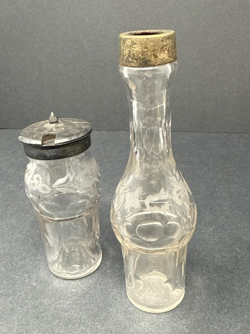 Lot # 51 - Antique Victorian Cruet Condiment Caddy with Etched Bottles