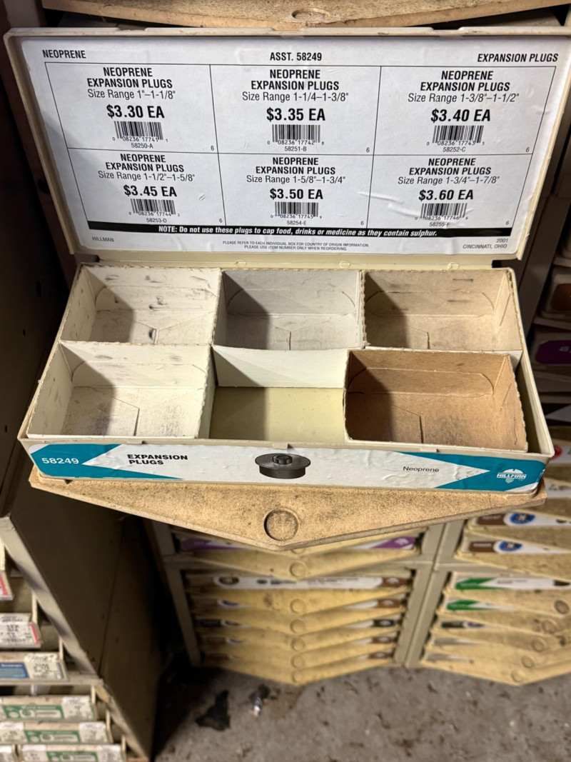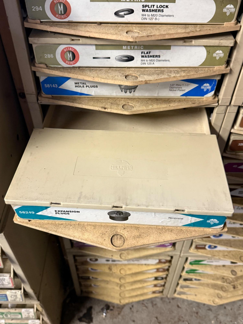 Commercial-grade Hillman storage cabinets like these are prized for their durability, modular design, and shop organization efficiency. Ideal for mechanics, carpenters, or estate tool collections, they can be reloaded and reused indefinitely.