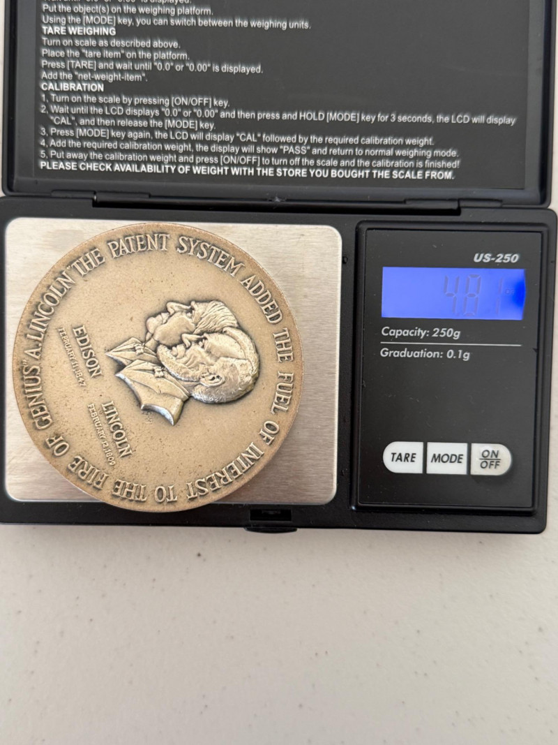 National Inventors Hall of Fame Bicentennial Medallion – Edison & Lincoln, Bronze Finish