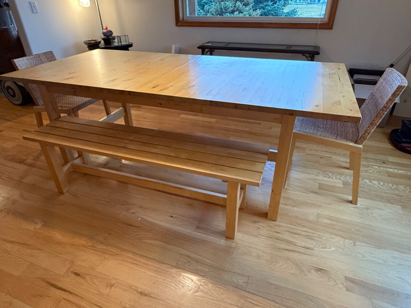 Lot # 104 - IKEA Norden Solid Birch Dining Table Set – Table, Bench, and Chairs