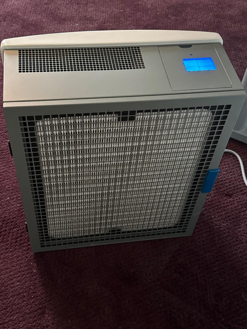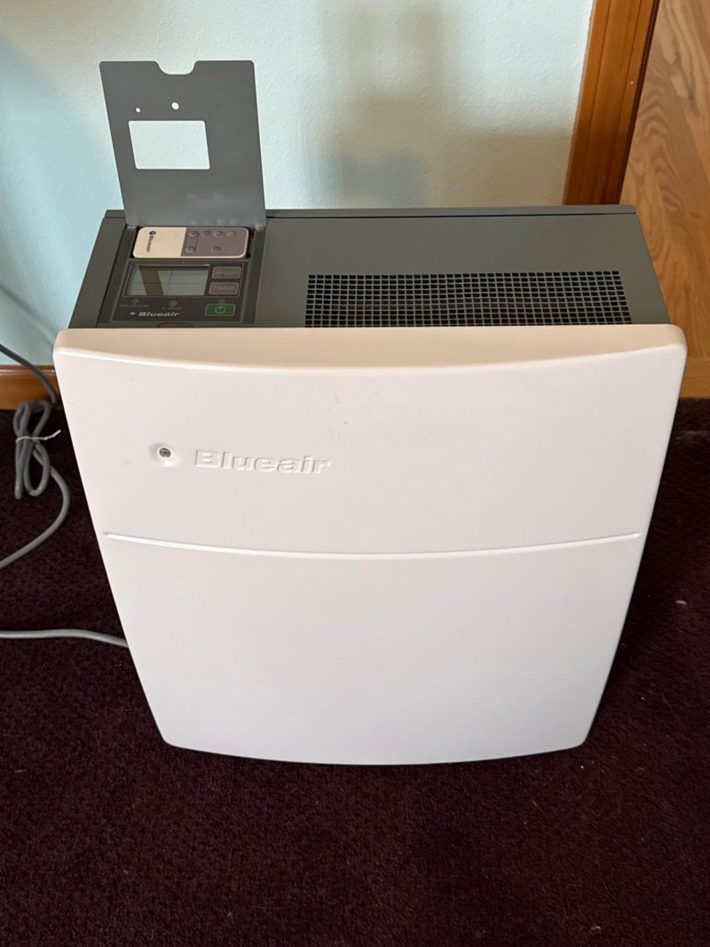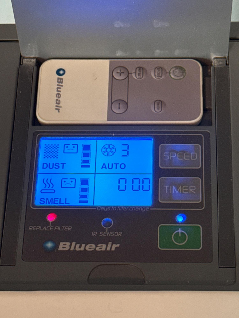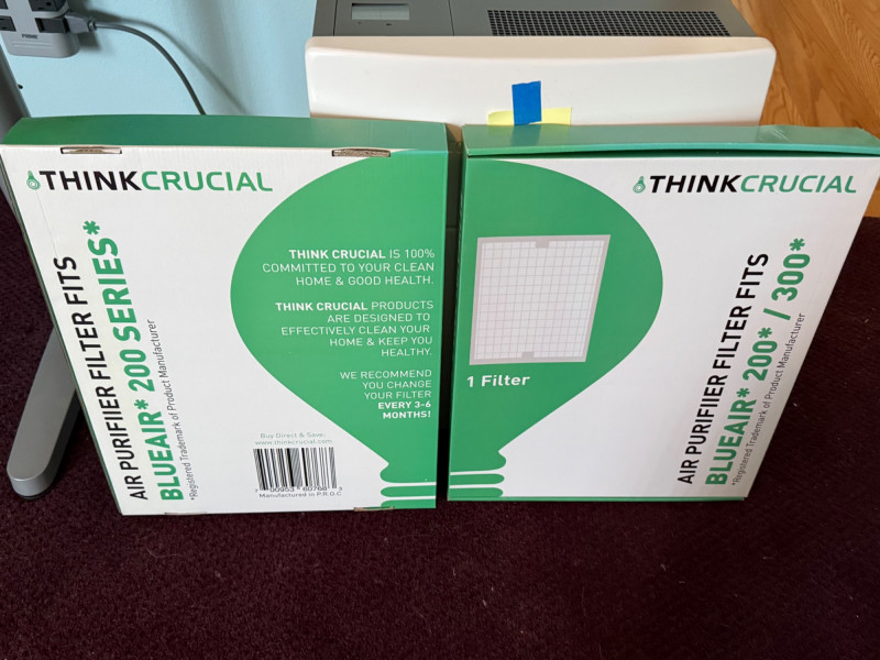 Blueair air purifier in working condition, complete with digital control panel and remote control, offering automatic air quality adjustment via built-in dust and odor sensors. The lot also includes two unopened Think Crucial replacement filters compatible with Blueair 200 and 300 Series units—ideal for continued use and easy maintenance. Condition: Tested and works properly. Display, controls, and remote all functional. Includes two new replacement filters (Think Crucial brand, sealed). Light surface wear consistent with normal home use. Features: Advanced 3-speed filtration system Auto mode adjusts fan speed based on air quality LCD display shows air quality and filter life Quiet operation with replaceable HEPA-type filters Includes remote control stored in top compartment Includes: Blueair Air Purifier Remote Control (2) Sealed Think Crucial Replacement Filters (fits Blueair 200/300 Series)