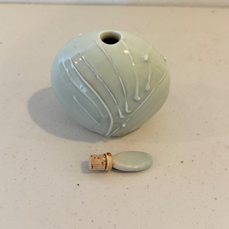 Lot # 134 - Carolyn Dulin Studio Porcelain Small Bottle – Celadon Glazed