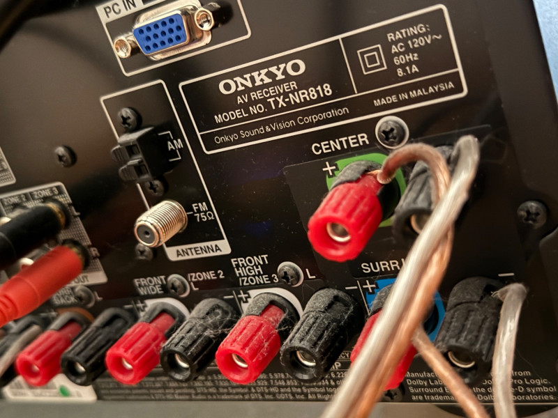 Powered by an Onkyo TX-NR818 AV receiver, this THX-certified unit delivers 135W per channel, multiple HDMI inputs, Zone 2/3 outputs, Ethernet networking, and Audyssey room calibration for optimized surround performance.Dimensions