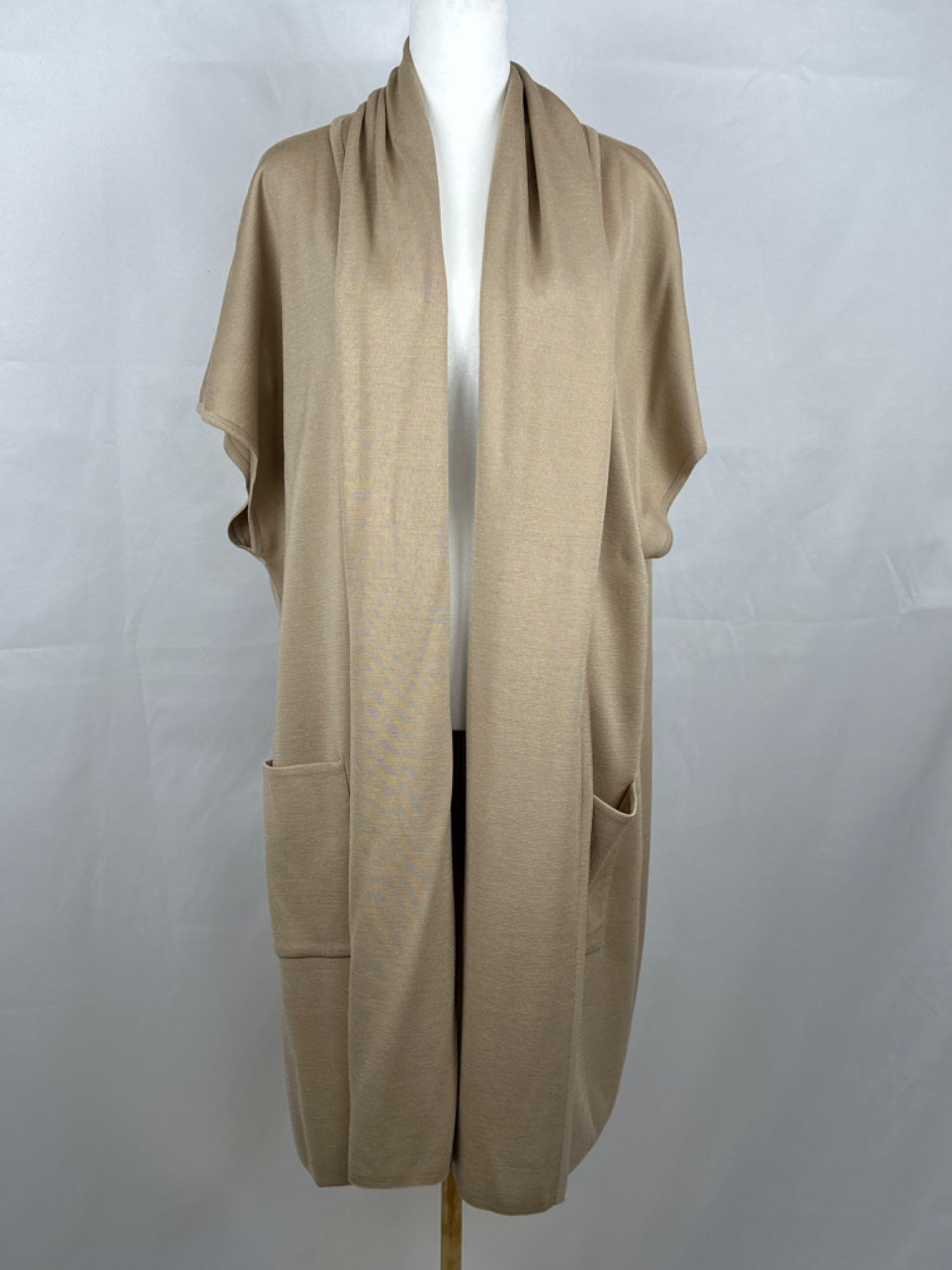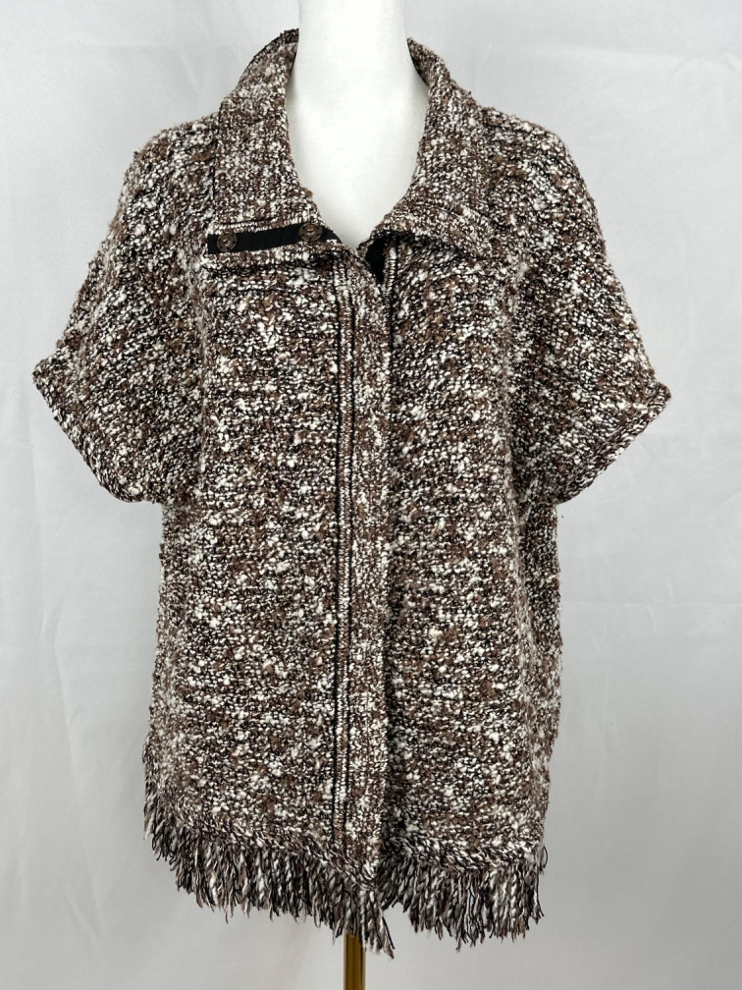 Lot # 2 - St John Poncho Cowled Neck Knitted Taupe & Gold Fringe - XL Starting Bid: $ 5.00 Bids: This sale will end in: |